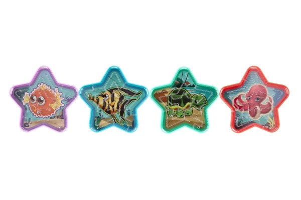 Διασκεδαστικό τσέπικο παζλ σε σχήμα αστεριού που εξασκεί τη δεξιοτεχνία, την υπομονή και τις δεξιότητες συντονισμού. Γείρετε και περιστρέψτε το αστέρι για να οδηγήσετε τη μπίλια στη σωστή διαδρομή από την άκρη προς το κέντρο και πίσω. Διάφορες εκδόσεις με χαρούμενα θαλάσσια μοτίβα και μίξη χρωμάτων εγγυώνται ότι κάθε μικρός εξερευνητής θα βρει το αγαπημένο του.