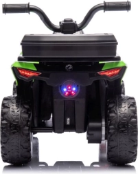 Το πράσινο παιδικό ηλεκτρικό τετράτροχο mini quad GTS1155 προσφέρει στα παιδιά ασφαλή και διασκεδαστική οδήγηση στο σπίτι και σε εξωτερικούς χώρους. Η ανθεκτική κατασκευή, οι μεγάλες εκτός δρόμου ρόδες και η άνετη σέλα ενισχύουν τη σταθερότητα και τον σίγουρο χειρισμό. Ο ρεαλιστικός σχεδιασμός, τα ανθεκτικά υλικά και ο εύκολος χειρισμός με τιμόνι κάνουν αυτό το μοντέλο εξαιρετική επιλογή για τις πρώτες off‑road εμπειρίες.