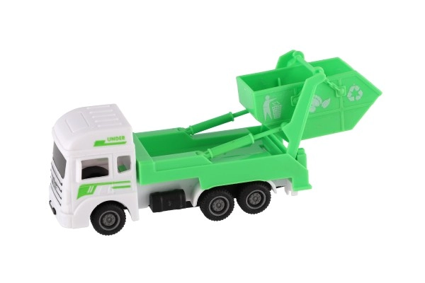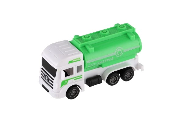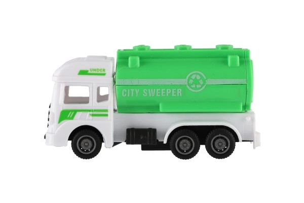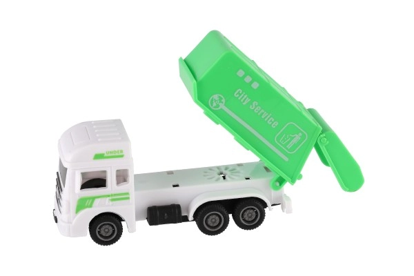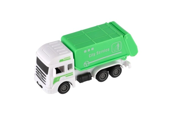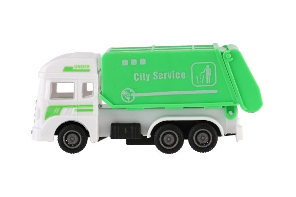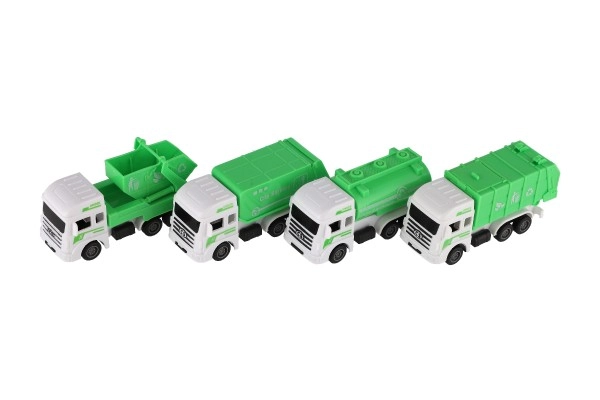 Περιλαμβάνει απορριμματοφόρο, βυτιοφόρο, σαρωτή δρόμων και ανατρεπόμενο φορτηγό. Τα παιδιά μπορούν να αλλάζουν ρόλους κατά τη διάρκεια του παιχνιδιού.