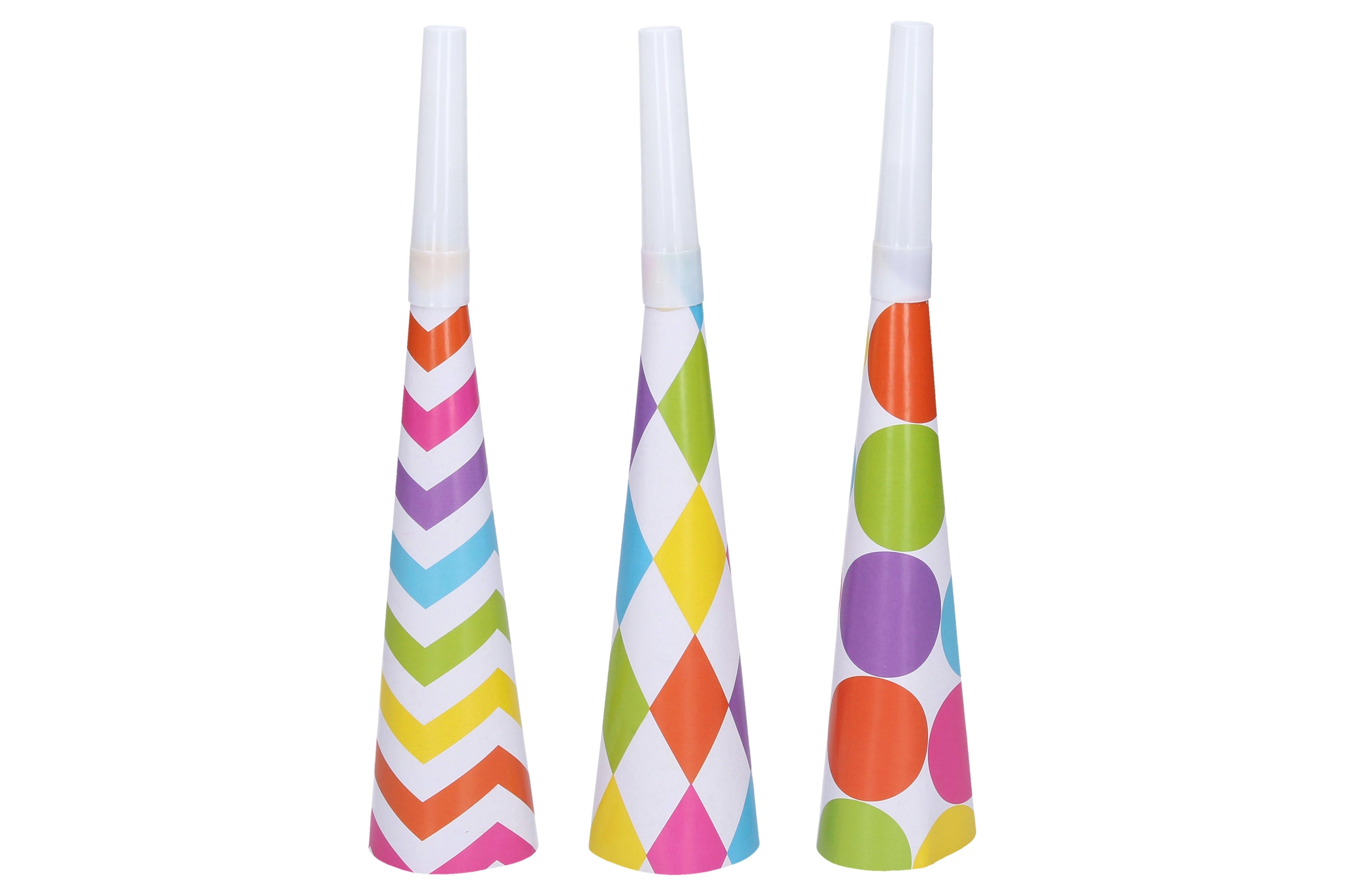 Διακοσμήστε το πάρτι σας με αυτές τις πολύχρωμες τρομπέτες και χαρίστε περισσότερη ζωντάνια και κέφι. Ιδανικές για γενέθλια, γιορτές ή άλλες ειδικές περιστάσεις.