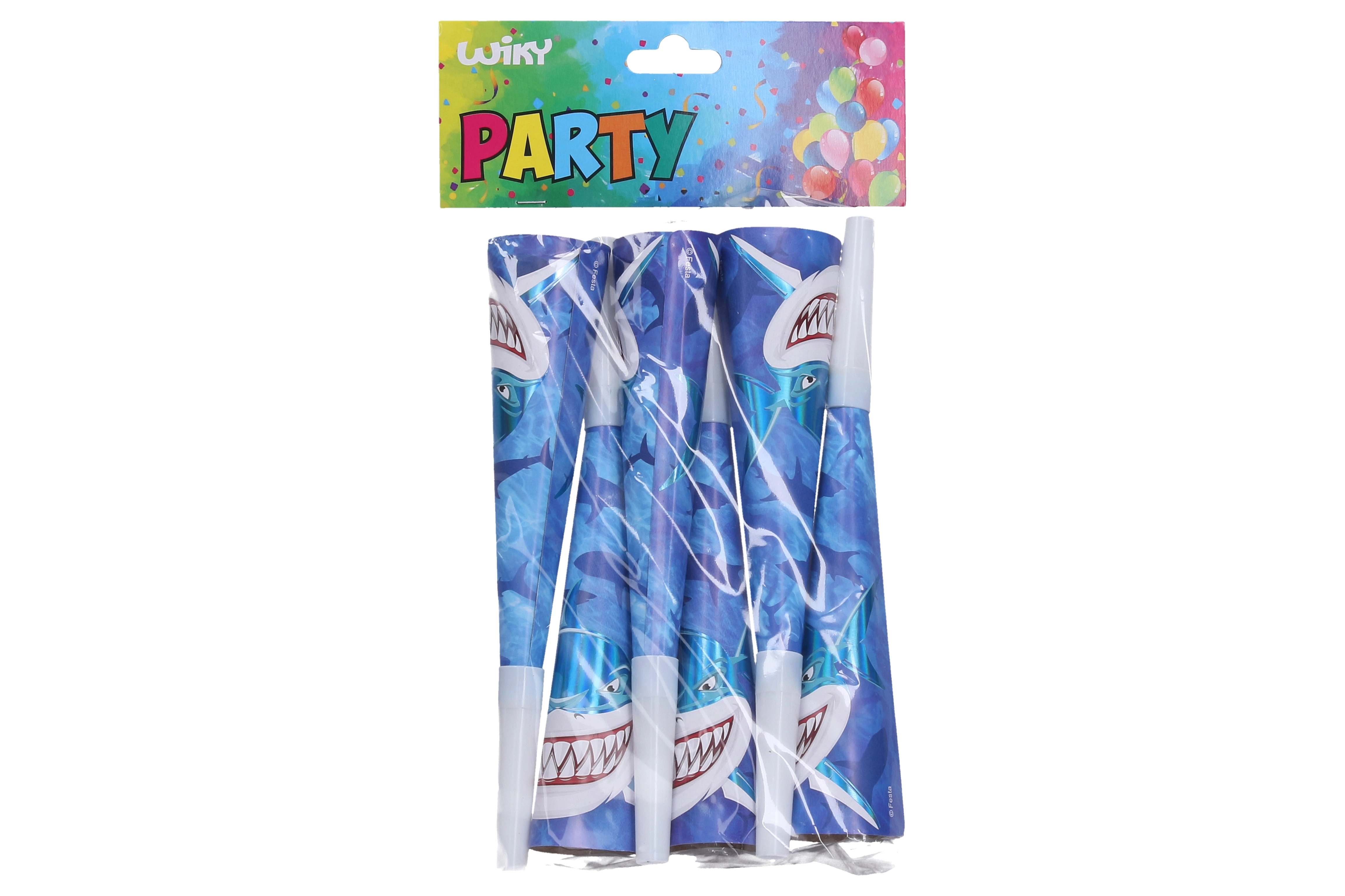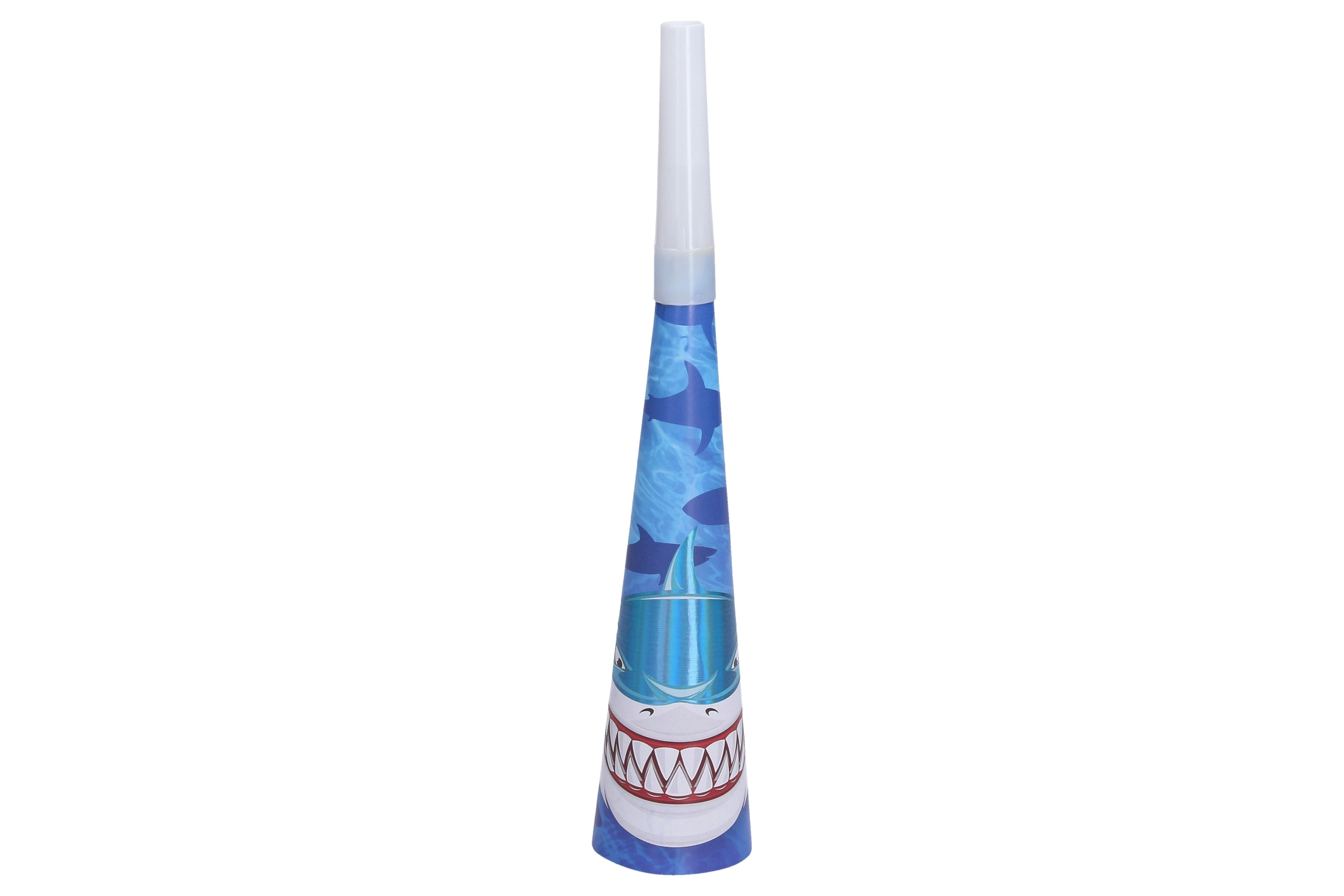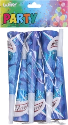 Δώστε σε κάθε γιορτή τη σωστή ατμόσφαιρα με τρομπονάκια πάρτι σε θέμα καρχαρία. Χάρη στο μήκος 20 εκ. κρατιούνται εύκολα ακόμη και από μικρότερα παιδιά και είναι απλά στη χρήση – αρκεί ένα φύσημα και η διασκέδαση ξεκινά.