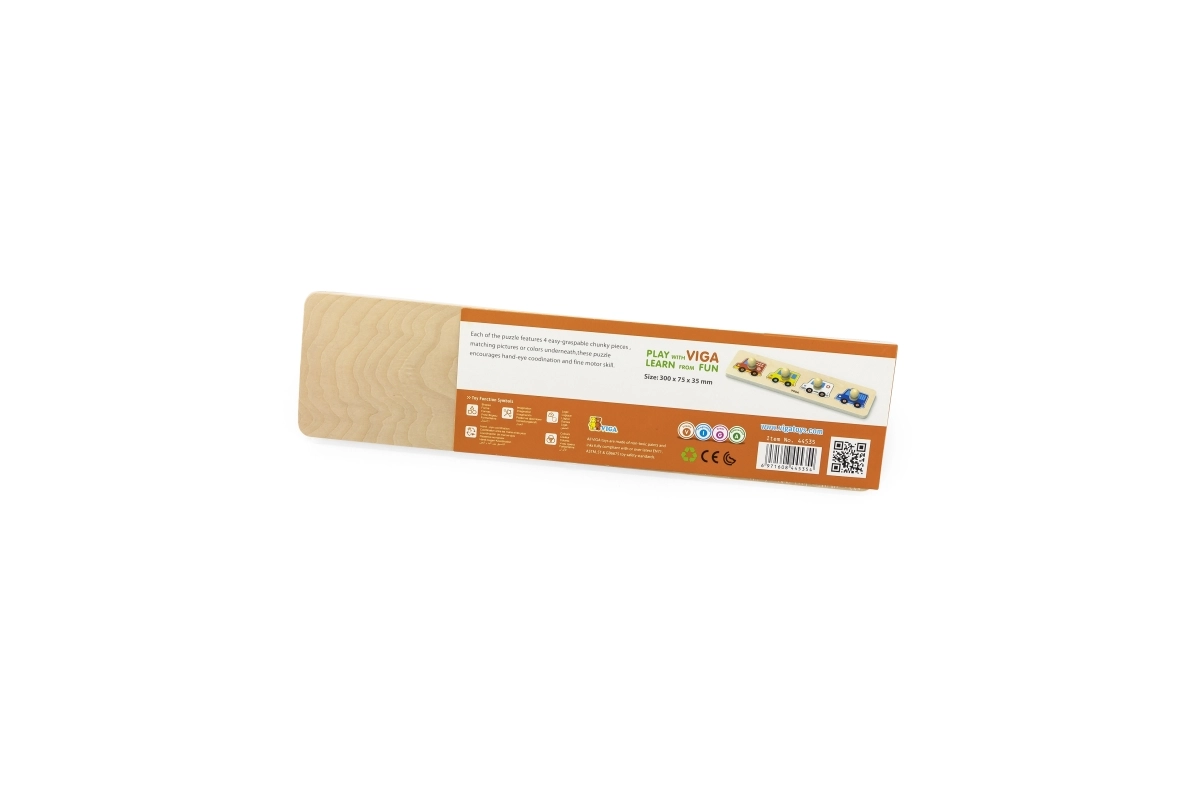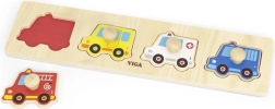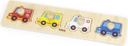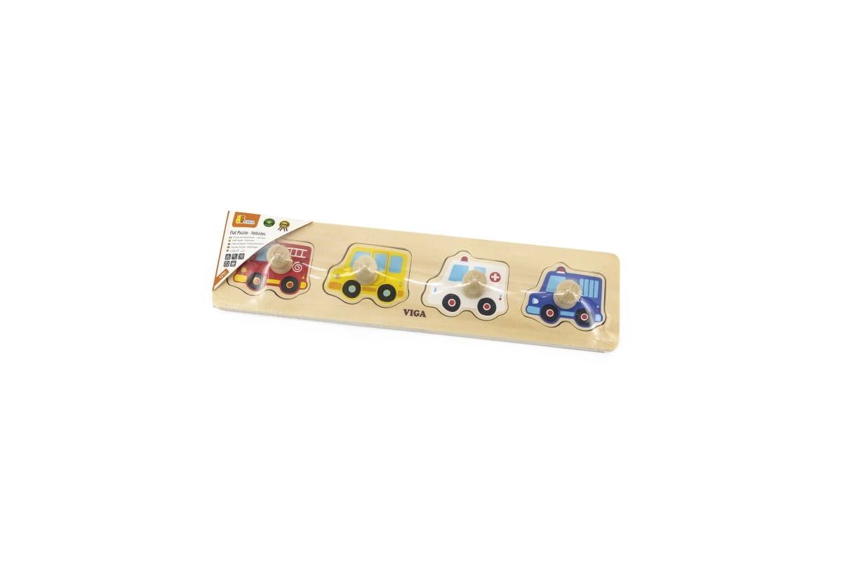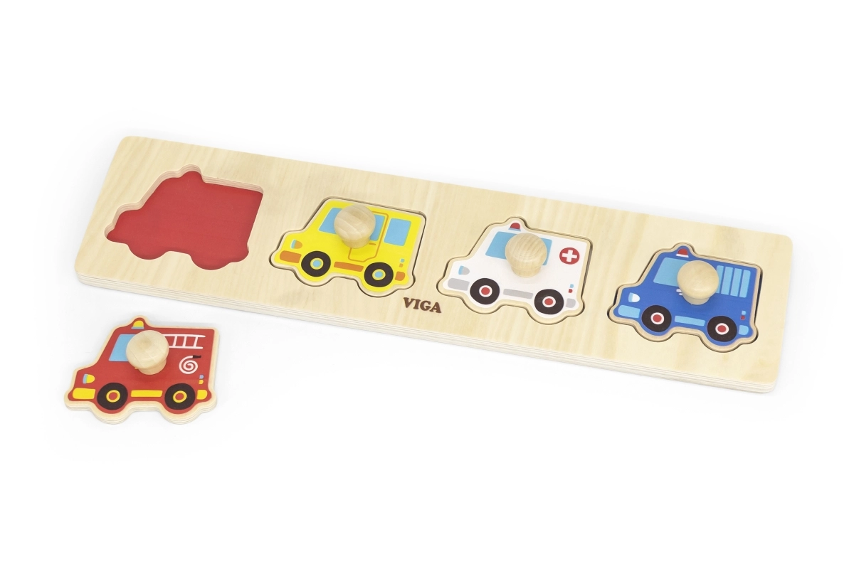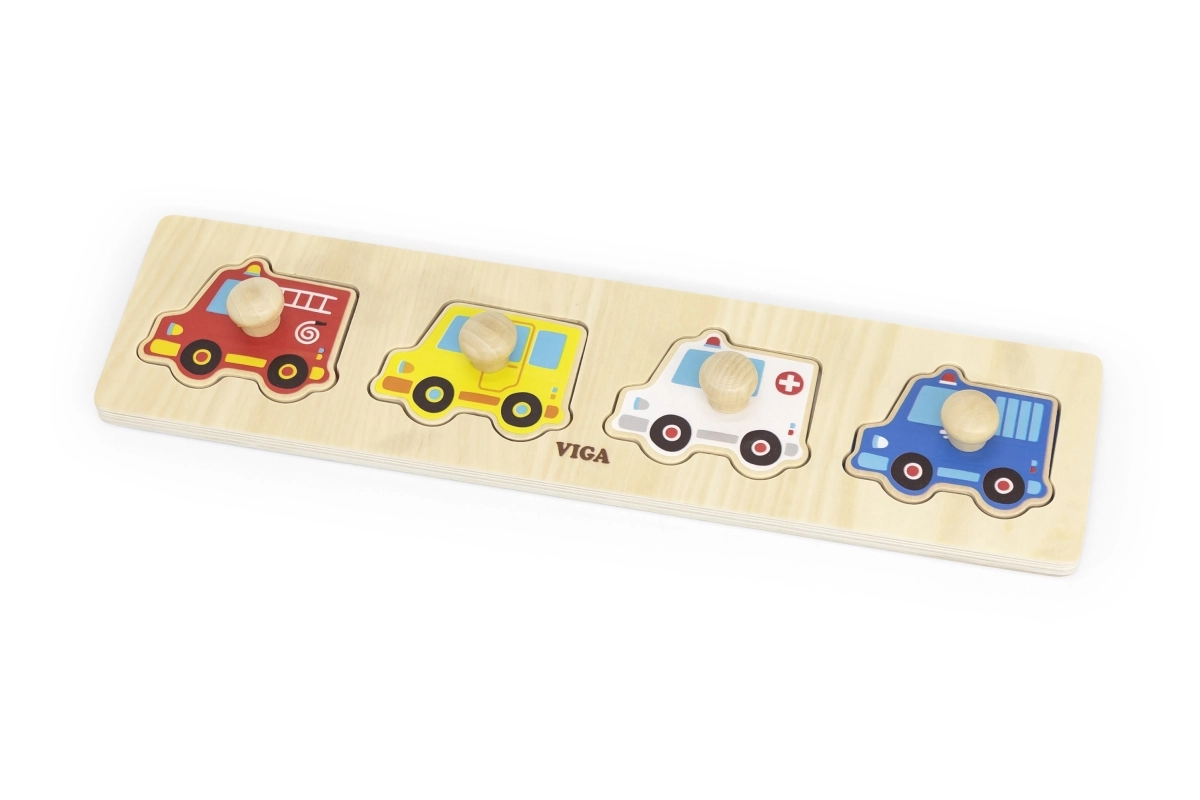 Αυτό το ποιοτικό ξύλινο παζλ τοποθέτησης με τέσσερα οχήματα (πυροσβεστικό, ταξί, ασθενοφόρο και περιπολικό) είναι εξαιρετική επιλογή για τα πρώτα λογικά παιχνίδια. Τα κομμάτια με πρακτικές κουμπωτές λαβές διευκολύνουν τον χειρισμό και ενθαρρύνουν τα παιδιά να επαναλαμβάνουν την τοποθέτηση και την εξερεύνηση.