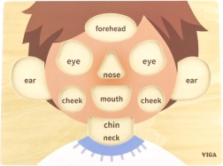 Τα παιδιά μαθαίνουν παιχνιδιάρικα να ξεχωρίζουν μάτια, μύτη, στόμα, αυτιά και μέτωπο – και ενισχύουν τις νέες έννοιες στην καθημερινή επικοινωνία.
