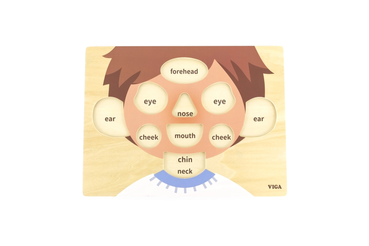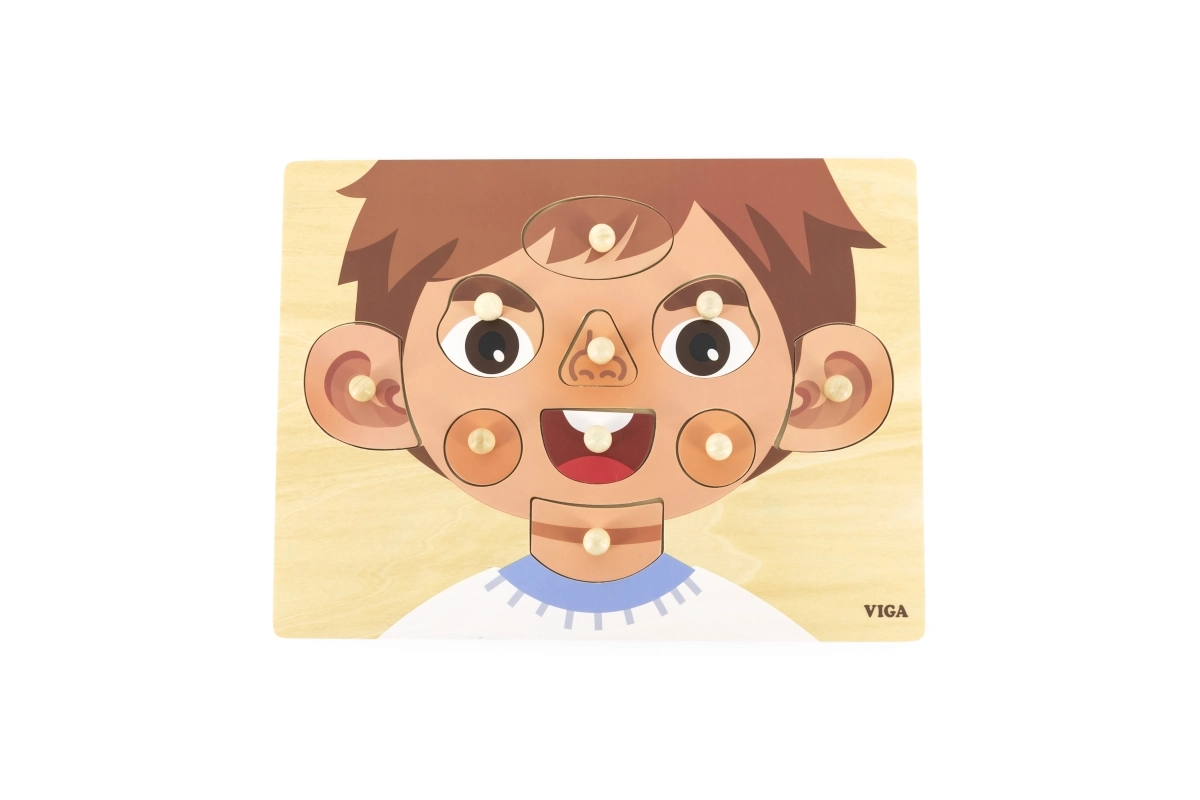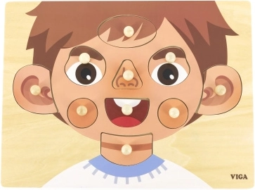 Αυτό το ξύλινο παζλ-ενθετήριο με θέμα το πρόσωπο είναι ιδανικό βοήθημα για τις πρώτες ανακαλύψεις του κόσμου. Χάρη στα στιβαρά ξύλινα κομμάτια με λαβές, τα παιδιά μαθαίνουν εύκολα ονομασίες όπως μάτια, μύτη, στόμα και αυτιά, ενώ ταυτόχρονα εξασκούν με διασκεδαστικό τρόπο τις κινητικές δεξιότητες.