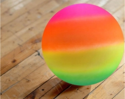 Η παιδική λαστιχένια μπάλα με διάμετρο περίπου 23 εκ. είναι ιδανική για καθημερινό παιχνίδι στο γήπεδο, στον κήπο, στο σχολείο και στις διακοπές. Χάρη στην ελαφριά κατασκευή της, πετιέται και πιάνεται εύκολα, ενώ τα ουράνια/πολύχρωμα χρώματα εξασφαλίζουν εξαιρετική ορατότητα και χαρά στην κίνηση. Το υλικό είναι αδιάβροχο, ώστε να διασκεδάζετε με τη μπάλα ακόμη και στο νερό ή στην πισίνα.
