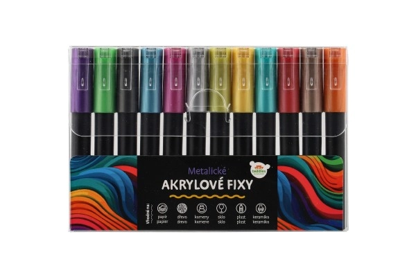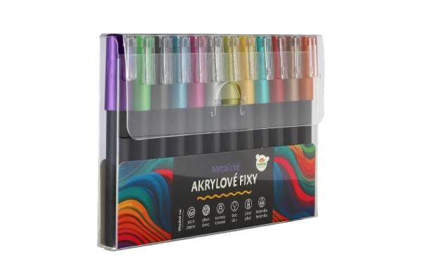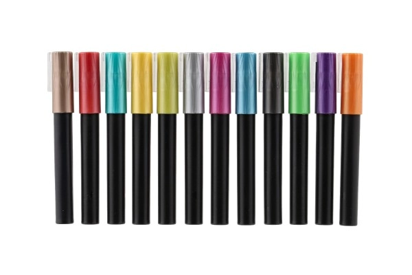 Με το σετ μας από μεταλλικούς ακρυλικούς μαρκαδόρους θα ζωντανέψει η δημιουργικότητά σας. Αυτό το σετ περιλαμβάνει 12 μαρκαδόρους, οι οποίοι είναι εύχρηστοι και ιδανικοί για ποικίλα έργα.
