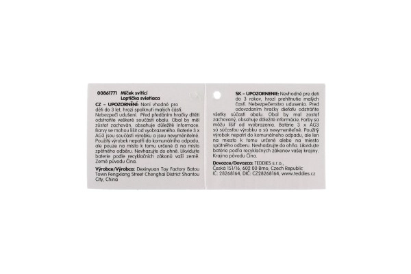 Με το πάτημα ενεργοποιείται το φωτεινό εφέ για ακόμη μεγαλύτερη διασκέδαση. Τροφοδοσία: 3× AG3 (περιλαμβάνονται, μη αντικαταστάσιμες).