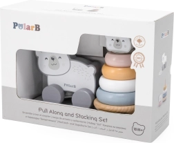 Ανακαλύψτε το απόλυτα ταιριαστό σετ ξύλινων παιχνιδιών Viga PolarB: μια σταθερή πυραμίδα με πολική αρκούδα για ταξινόμηση και στοίβαξη δαχτυλιδιών και ένα συρόμενο αρκουδάκι που ενθαρρύνει τα παιδιά στην κίνηση και τα πρώτα τους βήματα. Οι απαλές παστέλ αποχρώσεις και ο γλυκός σχεδιασμός θα ενθουσιάσουν παιδιά και γονείς.