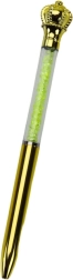 Ένα γοητευτικό στυλό που συνδυάζει κομψότητα και λειτουργικότητα. Το διάφανο σώμα με μικρούς “διαμαντένιους” κρυστάλλους δημιουργεί εντυπωσιακές αντανακλάσεις, ενώ η διακοσμητική κορώνα στο επάνω μέρος προσδίδει στιλ και πολυτελή χαρακτήρα. Το μπλε μελάνι εξασφαλίζει καθαρή και επαγγελματική γραφή.