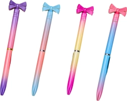Το στυλό διαρκείας με φιογκάκι εντυπωσιάζει με την πρώτη ματιά – το διακοσμητικό στοιχείο προσδίδει γοητεία και μοναδικό στιλ στο εργαλείο γραφής. Χάρη στο μπλε μελάνι και τη μύτη 0,7 mm, προσφέρει ομαλή και καθαρή γραφή για το σχολείο, το γραφείο και το σπίτι.