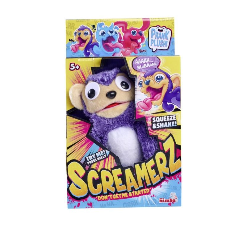 Καλώς ήρθατε στον κόσμο των ScreamerZ, των διασκεδαστικών μωβ λούτρινων μαϊμούδων με τρελά μάτια, που χαροποιούν παιδιά και ενήλικες. Με κάθε πάτημα στην κοιλίτσα, το νέο σας αγαπημένο παιχνίδι βγάζει χαριτωμένους ήχους και με το επόμενο πάτημα αρχίζει να ουρλιάζει από χαρά.