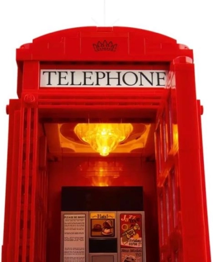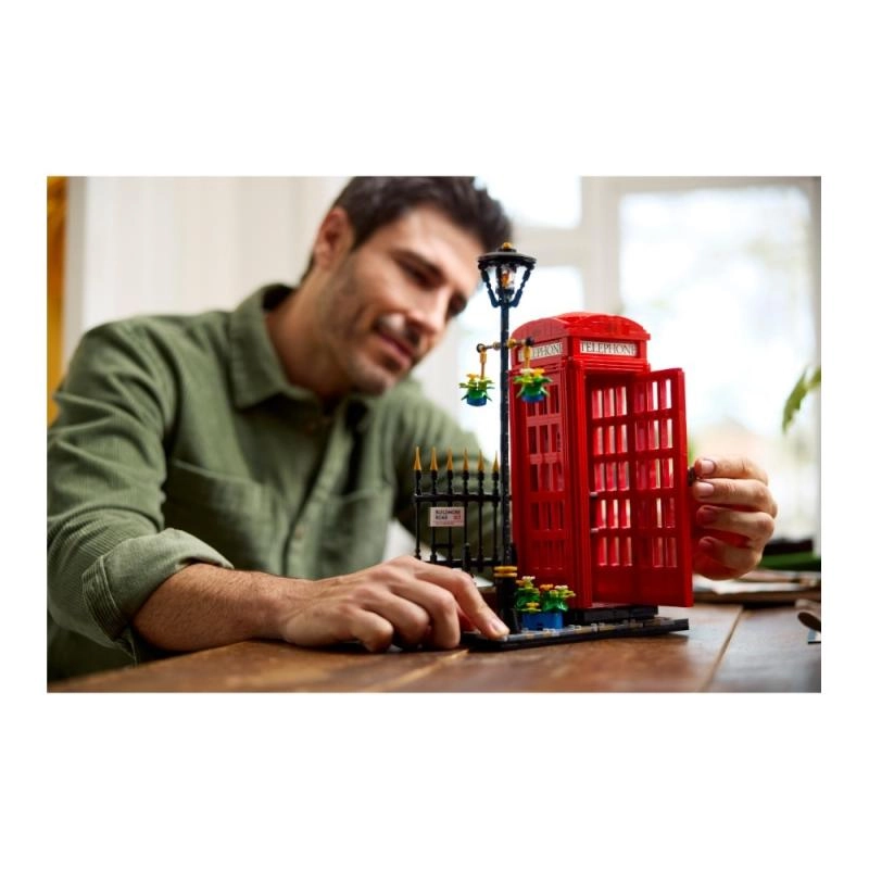 Δημιουργήστε στο σπίτι σας ένα κομμάτι βρετανικής ιστορίας με τον λεπτομερή λονονδρέζικο τηλεφωνικό θάλαμο, που ξεχωρίζει με το εμβληματικό κόκκινο χρώμα, τα διαφανή πάνελ στην πόρτα και την επιγραφή TELEPHONE. Η συναρμολογούμενη σκηνή περιλαμβάνει πλακόστρωτο πεζοδρόμιο, λάμπα δρόμου με λουλούδια, φράχτη και πινακίδα – όλα έτοιμα για έκθεση σε ράφι, σαλόνι ή γραφείο.