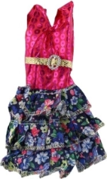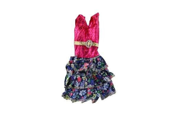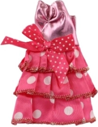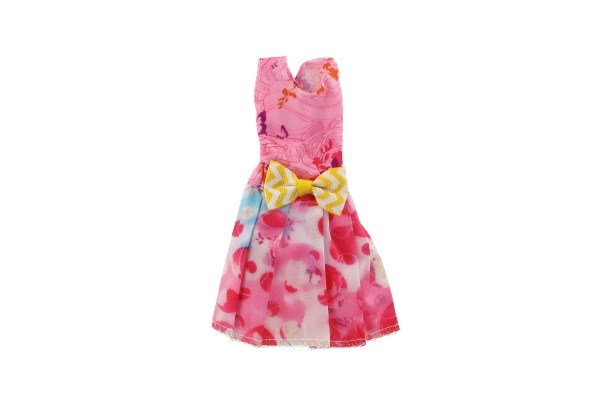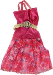 Αυτό το ροζ φόρεμα με διακοσμητική χρυσή ζώνη και μοτίβα ολοκληρώνει κάθε κούκλα στην εντέλεια.