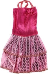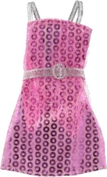 Ροζ φόρεμα με λαμπερή ασημένια ζώνη και τιράντες που χαρίζει στην κούκλα μια νότα πολυτέλειας και στυλ.