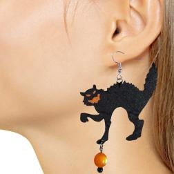 Στυλάτα σκουλαρίκια σε σχήμα γάτας-μάγισσας, ιδανικό αξεσουάρ για καρναβάλι και Halloween. Προσθέτουν στο look σας έναν θεματικό αέρα, είναι ελαφριά και άνετα στη χρήση και σίγουρα τραβούν τα βλέμματα σε κάθε πάρτι.