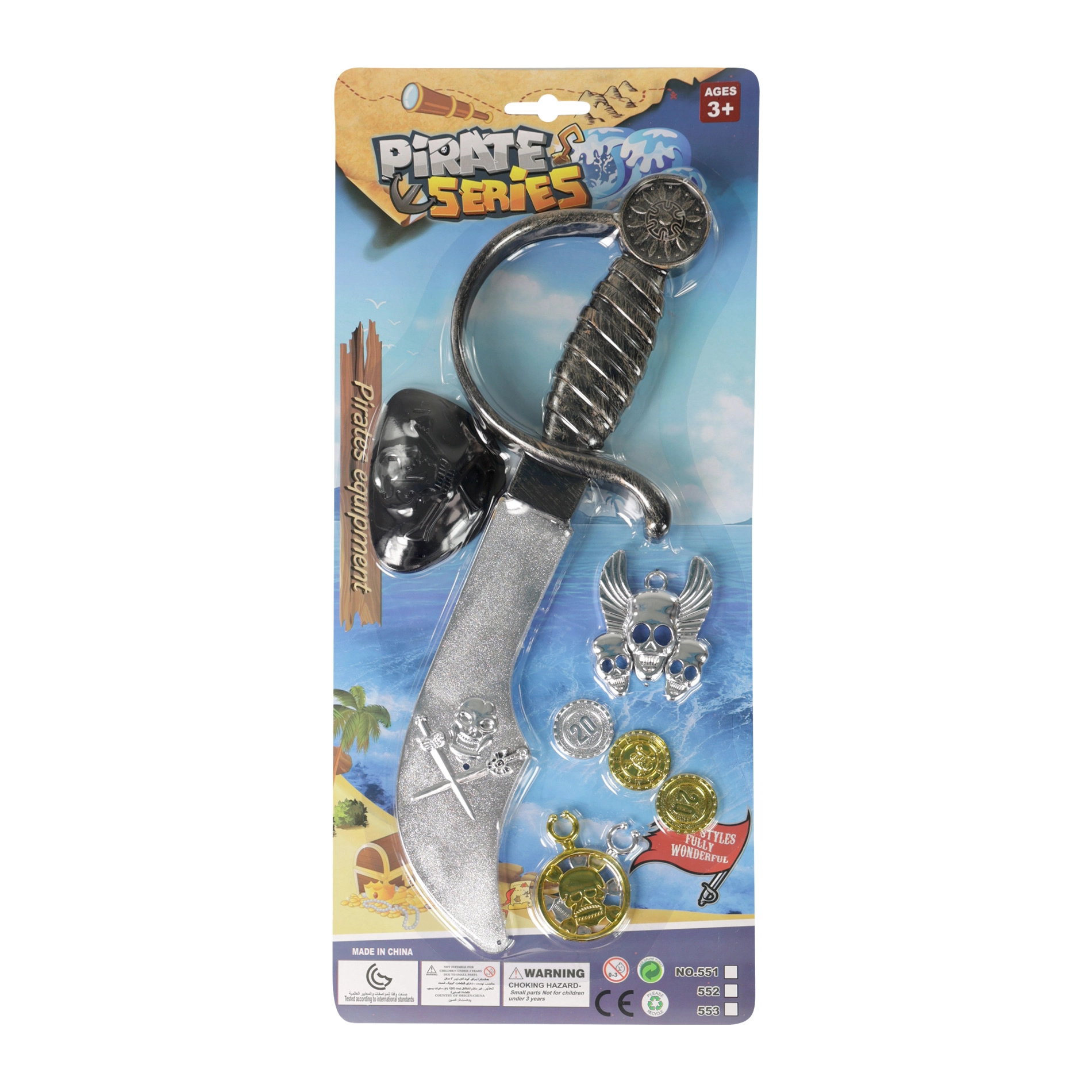 Ξεκινήστε περιπέτειες στην ανοιχτή θάλασσα με αυτό το πειρατικό σετ για παιδιά! Περιλαμβάνει πλαστικό πειρατικό σπαθί, κάλυπτρα ματιού και θεματικά αξεσουάρ με σύμβολα κρανίου και νομισμάτων. Ιδανικό για καρναβάλι, μεταμφιέσεις και φανταστικό παιχνίδι. Συνιστάται από 3 ετών.