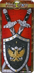 Αυτό το ιπποτικό σετ προσφέρει στα παιδιά αυθεντική εμπειρία μεσαιωνικών περιπετειών. Χάρη στα ελαφριά υλικά κρατιέται εύκολα και είναι ιδανικό για παιχνίδι στο σπίτι, καρναβάλια και ως συμπλήρωμα στολής. Η διακοσμημένη ασπίδα με έντονο έμβλημα και το ζευγάρι προσεγμένα σπαθιά ενισχύουν τη φαντασία και το δημιουργικό παιχνίδι.