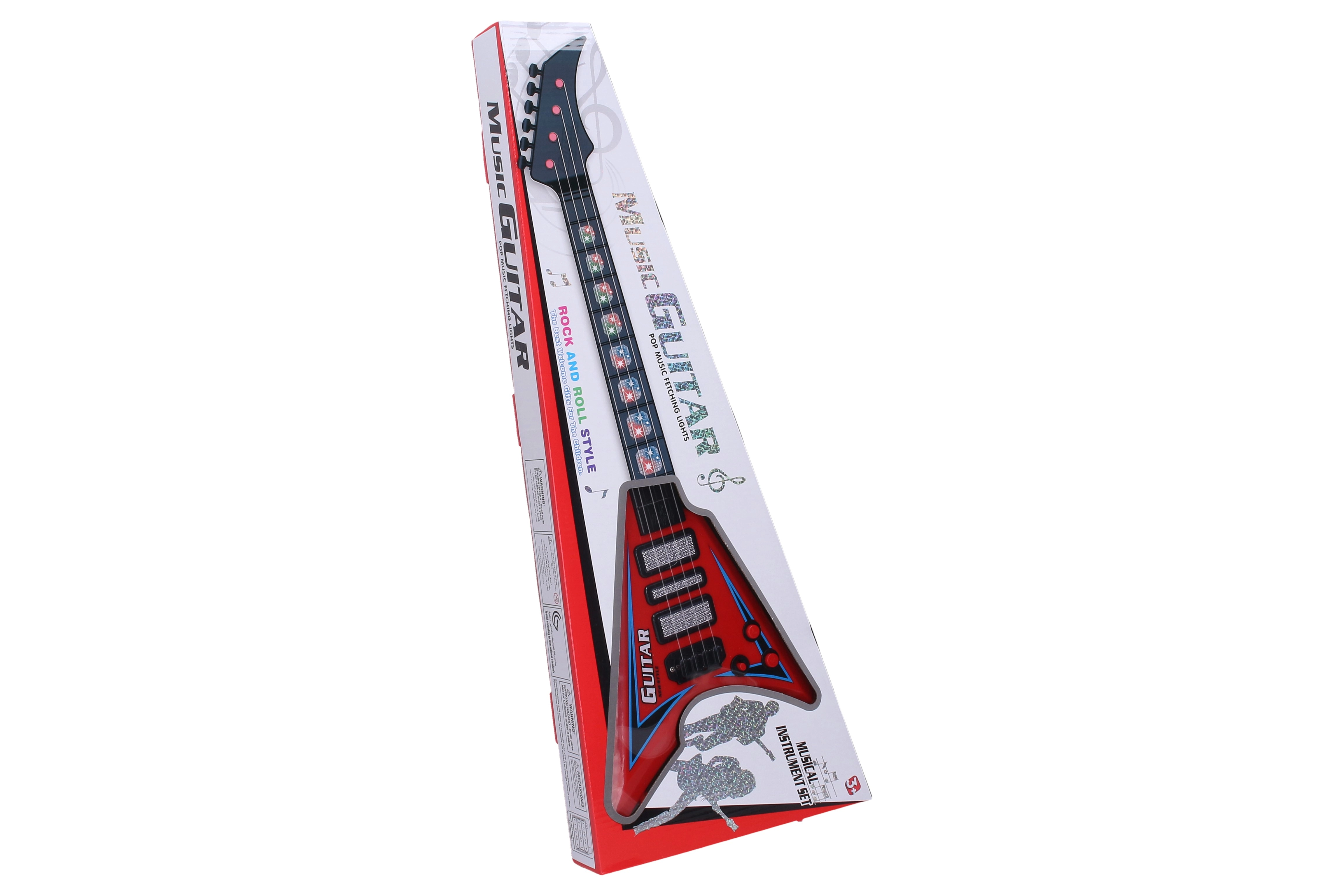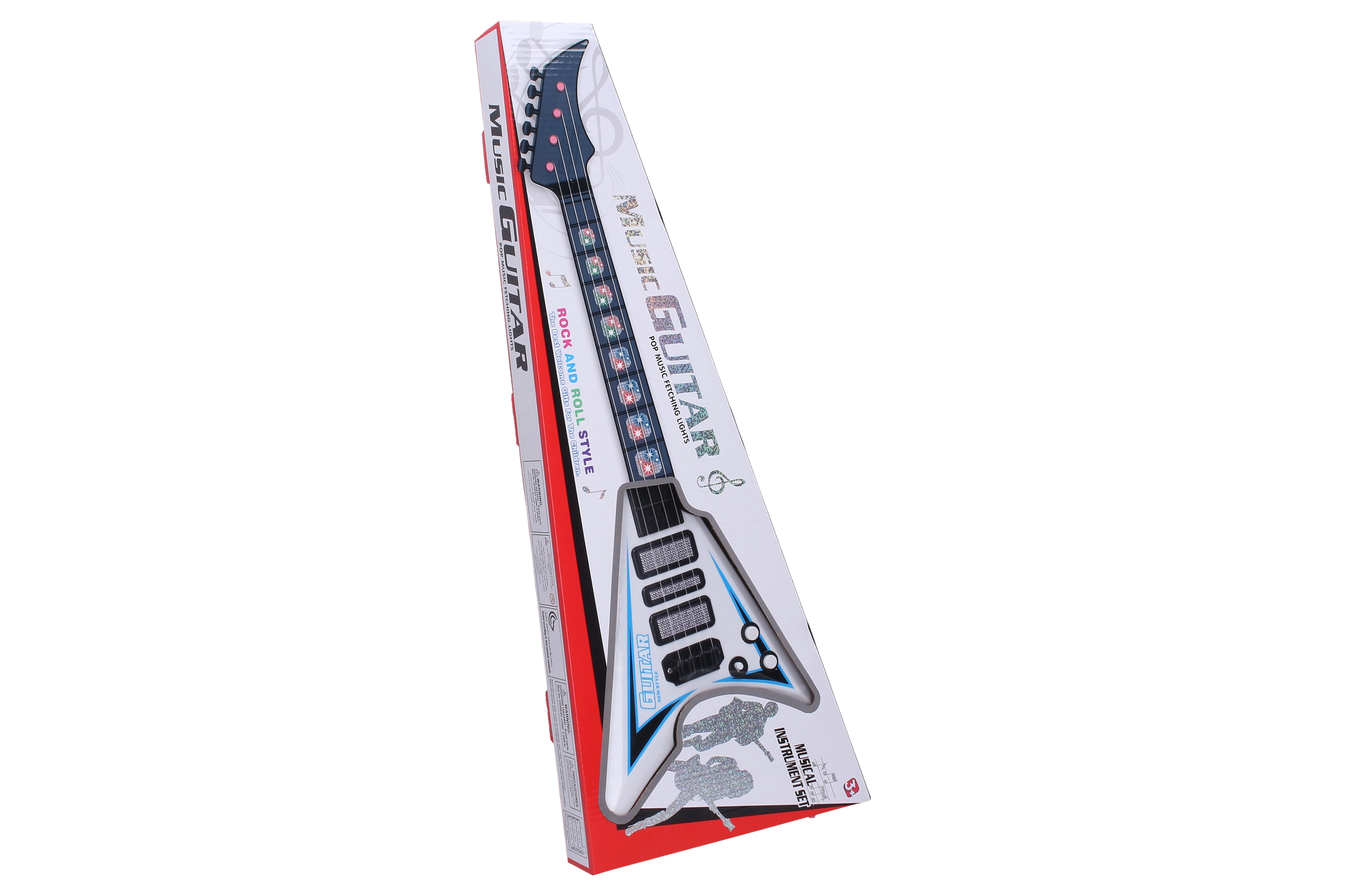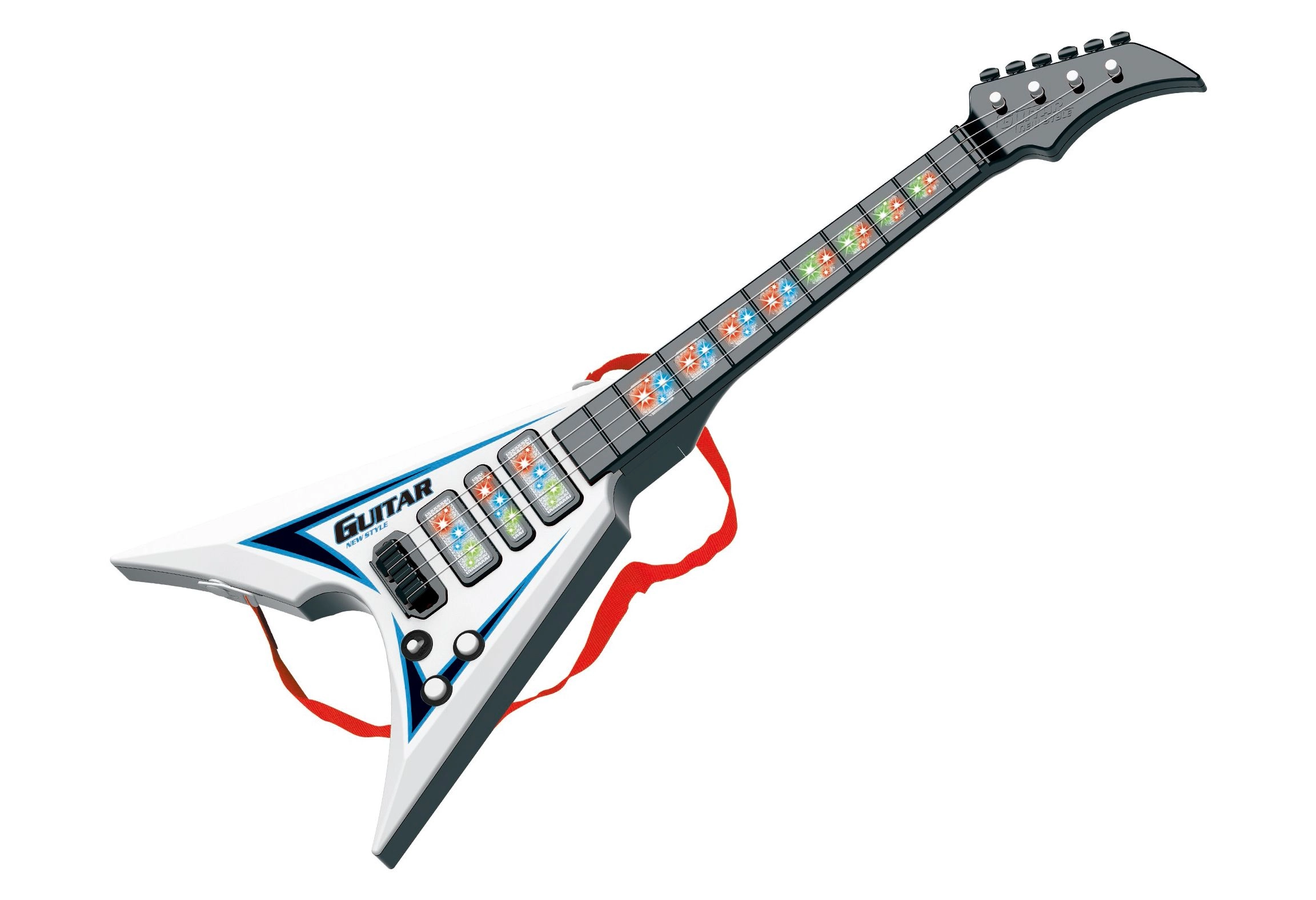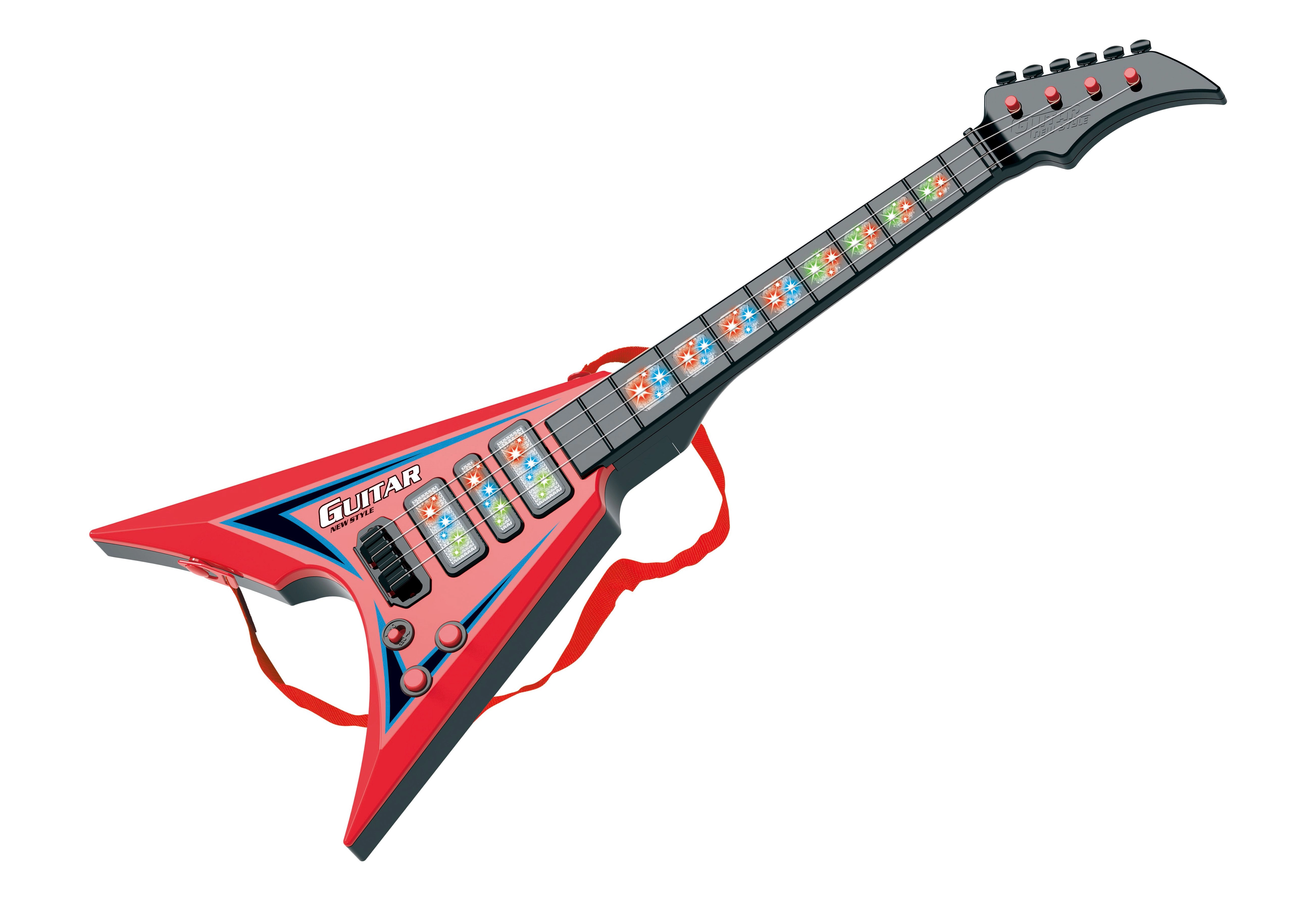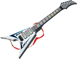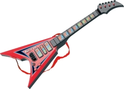 Αυτή η ηλεκτρική κιθάρα είναι ιδανική για αρχάριους και προχωρημένους μουσικούς χάρη στις διαστάσεις 22x5x56 cm. Διαθέτει φωτεινά και ηχητικά εφέ που δημιουργούν μια μοναδική εμπειρία κατά το παίξιμο. Τροφοδοσία με τρεις μπαταρίες 3xAA, οι οποίες δεν περιλαμβάνονται στη συσκευασία, και εύκολος χειρισμός χάρη στον διακόπτη ON/OFF κοντά στα ποτενσιόμετρα. Και τα δύο ποτενσιόμετρα χρησιμεύουν για ρύθμιση των εφέ.