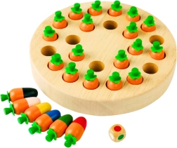 Διασκεδαστικό και έξυπνο οικογενειακό παιχνίδι από ποιοτικό ξύλο που αναπτύσσει τη μνήμη, τη λογική σκέψη και τη λεπτή κινητικότητα. Συλλέξτε πολύχρωμα καροτάκια, θυμηθείτε τη θέση τους και κερδίστε χάρη σε μια έξυπνη στρατηγική και λίγη τύχη. Οι απλοί κανόνες προσαρμόζονται εύκολα σύμφωνα με την ηλικία των παικτών – ιδανικό για οικογενειακές βραδιές και παιχνίδι με φίλους.
