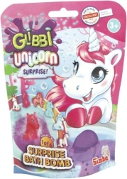 Μεταμορφώστε την μπανιέρα σε ένα ουράνιο βασίλειο! Η αφρίζουσα μπάλα Glibbi σε ροζ και μοβ αποχρώσεις διαλύεται εντυπωσιακά στο νερό και αφήνει ευχάριστο άρωμα και χρωματιστό αφρό. Μέσα σε κάθε βόμβα κρύβεται μια έκπληξη – μια συλλεκτική φιγούρα μονόκερου που διεγείρει τη φαντασία των παιδιών και τη χαρά της ανακάλυψης.