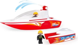 Το πυροσβεστικό σετ BOAZZ φέρνει μια δυναμική αποστολή θαλάσσιας διάσωσης σε παιδική εκδοχή. Η κόκκινο-λευκή γρήγορη λέμβος με λεπτομερείς εκτυπώσεις “Fire Fighter” και το στιλάτο καταμαράν δημιουργούν ένα δεμένο δίδυμο για επιχειρήσεις διάσωσης στο νερό. Το λειτουργικό υδροβόλο επιτρέπει την πραγματική εκτόξευση νερού, ενισχύοντας τη διασκέδαση και τον ρεαλισμό του παιχνιδιού.