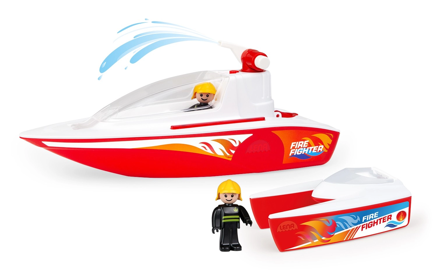 Δύο κινητές φιγούρες πληρώματος εφαρμόζουν στο πιλοτήριο και στο κατάστρωμα, ώστε τα παιδιά να φτιάχνουν εύκολα τις δικές τους ιστορίες – από πυρόσβεση μέχρι τολμηρές επιχειρήσεις διάσωσης. Η ανθεκτική κατασκευή και ο πλευστός σχεδιασμός είναι ιδανικά για παιχνίδι τόσο στο σπίτι όσο και έξω.