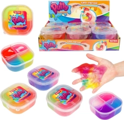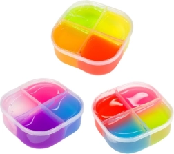 Το ουράνιο τόξο σλάιμ είναι ιδανικό για όλους όσοι θέλουν να ζήσουν κάτι ασυνήθιστο και διασκεδαστικό. Η μάζα σε διάφανα κυπελλάκια χωρίζεται σε τέσσερα χρώματα, επιτρέποντας μοναδικούς συνδυασμούς και χρωματικά πειράματα.
