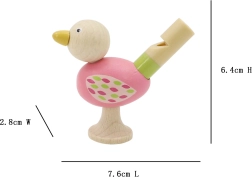 Πρωτότυπη σφυρίχτρα σε σχήμα πουλιού, που προσφέρεται σε τέσσερις διαφορετικές χρωματικές παραλλαγές - ροζ, μπλε, κίτρινο και πορτοκαλί.