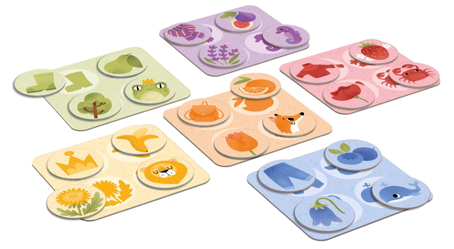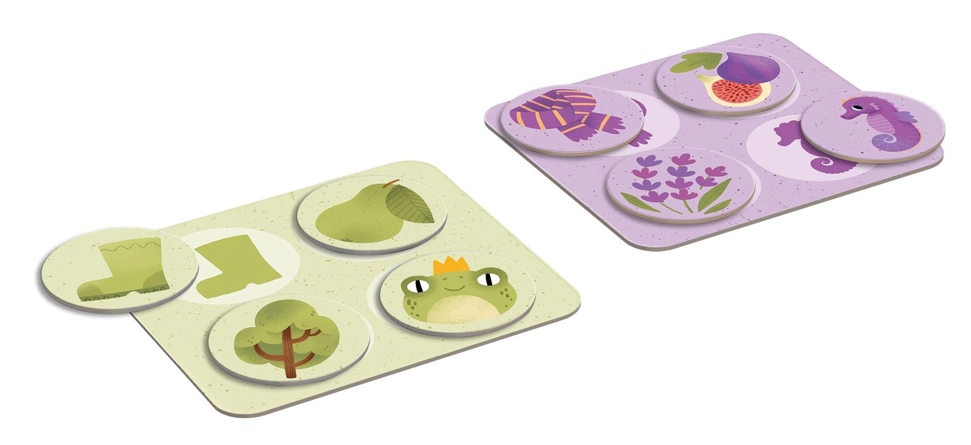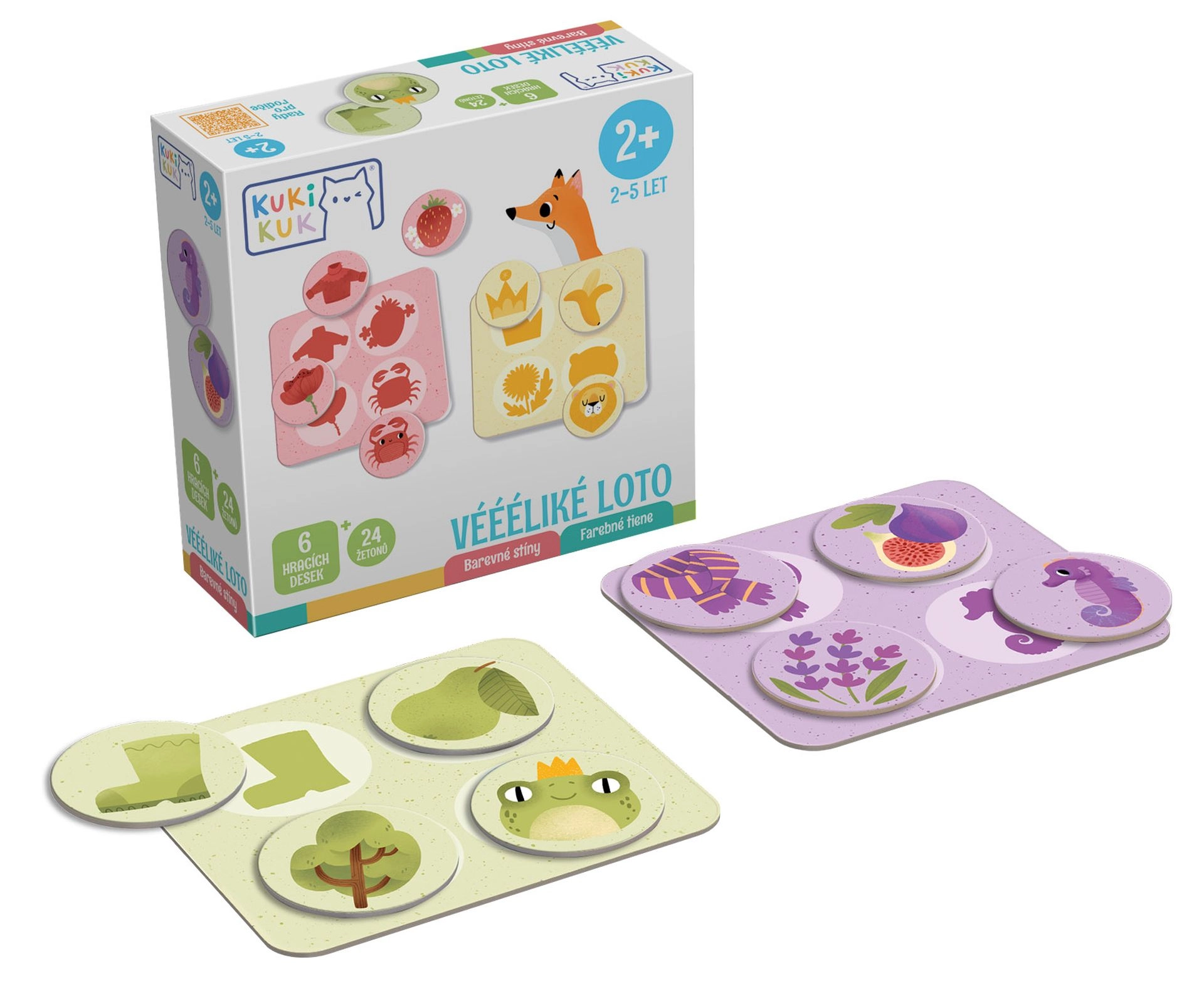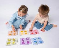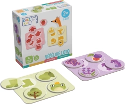 Ένα διαδραστικό εκπαιδευτικό παιχνίδι που προσφέρει στα παιδιά χαρά στην ανακάλυψη των χρωμάτων και των σχημάτων. Χάρη στα μεγάλα στρογγυλά πιόνια και τις ανθεκτικές πινακίδες, τα παιδιά μαθαίνουν να αντιστοιχίζουν εικόνες με σκιές, να ονοματίζουν αντικείμενα και να αναγνωρίζουν βασικά χρώματα. Το παιχνίδι προσφέρει πολλές παραλλαγές – από απλή αντιστοίχιση έως κλασικό λότο/μπίνγκο.