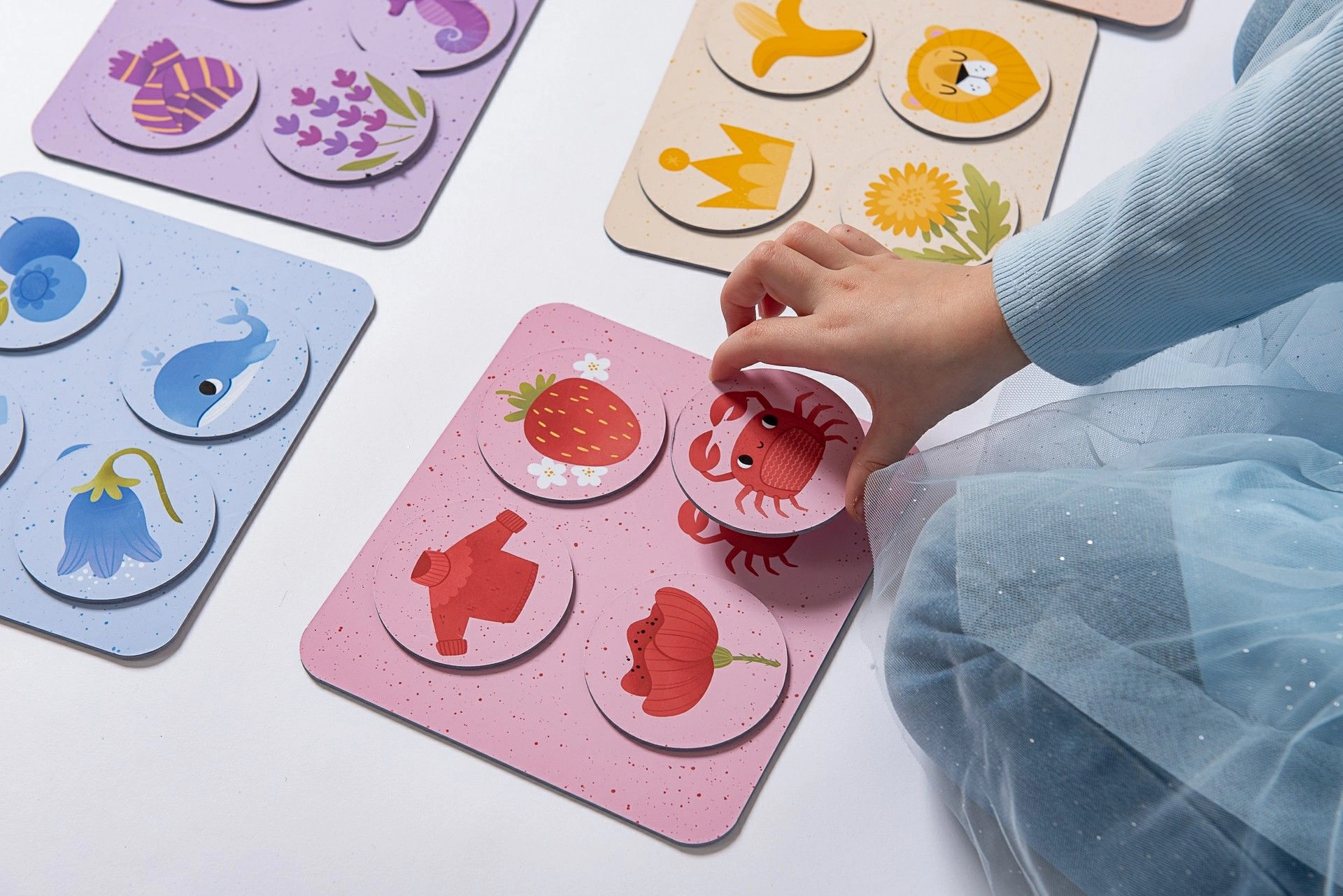 Τα παιδιά τοποθετούν τα πιόνια σύμφωνα με τα περιγράμματα και τα χρώματα, εκπαιδεύοντας έτσι την οπτική διάκριση, την προσοχή και την ικανότητα αντιστοίχισης.