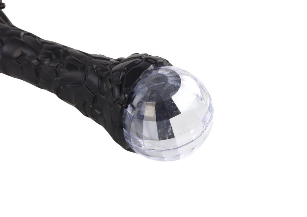 Η διάφανη, πολύεδρη σφαίρα δημιουργεί εντυπωσιακά φωτεινά εφέ και συμπληρώνει τη φουτουριστική εμφάνιση του σπαθιού.
