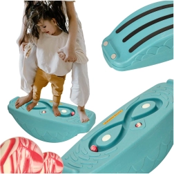 Η τιρκουάζ ισορροπιστική σανίδα είναι ένα ιδανικό βοήθημα για την ανάπτυξη κινητικών δεξιοτήτων και ισορροπίας στα παιδιά. Ο ενδιαφέρων λαβύρινθος με λαστιχένιες μπίλιες προσφέρει μια εξαιρετική ευκαιρία για εξάσκηση. Η ασφάλεια διασφαλίζεται από τα αντιολισθητικά στοιχεία και την υφή της επιφάνειας, που αποτρέπει την ολίσθηση κατά το παιχνίδι.