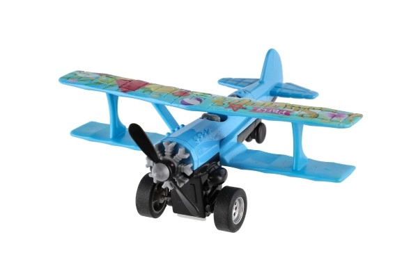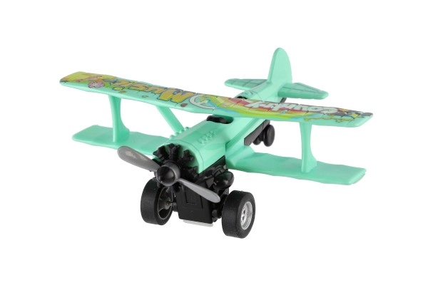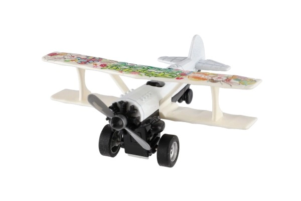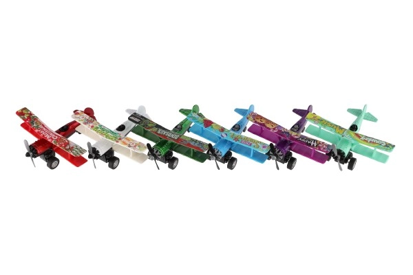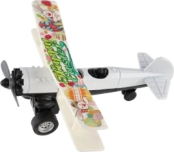 Ένα πολύχρωμο διπλάνο θα ενθουσιάσει κάθε μικρό πιλότο. Χάρη στο μηχανισμό επιστροφής (pull-back) εκτοξεύεται μπροστά όταν το αφήσετε και κατά την κίνηση περιστρέφεται η μπροστινή έλικα. Ανθεκτική κατασκευή από μέταλλο και πλαστικό, συμπαγείς διαστάσεις 10 × 11 εκ. και μίξη ελκυστικών χρωμάτων το κάνουν υπέροχο παιχνίδι για παιδιά από 3 ετών.