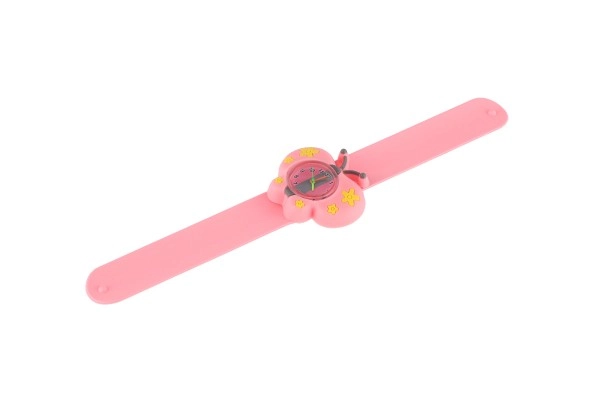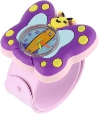 Το ρολόι είναι κατασκευασμένο από απαλή και ανθεκτική σιλικόνη, ευχάριστη στην αφή και με καλή εφαρμογή. Τροφοδοτείται από την ευρέως διαθέσιμη μπαταρία LR626. Μπορείτε να επιλέξετε ανάμεσα σε δύο μοτίβα/παραλλαγές σε ροζ-μοβ τόνους με χαριτωμένη πεταλουδίτσα.