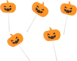 Κάντε κάθε γλυκό τον πρωταγωνιστή του Halloween. Οι πορτοκαλί κολοκύθες με χαμόγελο jack‑o’‑lantern πάνω σε λευκά καλαμάκια χαρίζουν στα cupcakes, στις τούρτες και στα μικρά κεράσματα άμεση ατμόσφαιρα. Το μόνο που χρειάζεται είναι να τα καρφώσετε – χωρίς κόλλες και χωρίς ακαταστασία.