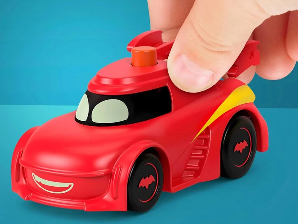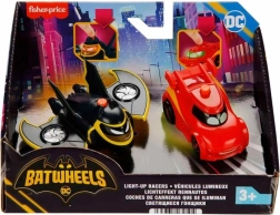 Ξεκινήστε ηρωική διασκέδαση με το σετ δύο οχημάτων DC BATWHEELS με φώτα, σε κλίμακα 1:55. Πατώντας το κουμπί, ανάβουν τα μάτια και το «πρόσωπο» των αγαπημένων ηρώων και τα παιδιά βυθίζονται αμέσως στη δράση. Η αυθεντική εμφάνιση, οι ελεύθερα περιστρεφόμενοι τροχοί και το συμπαγές μέγεθος για μικρά χέρια κάνουν αυτά τα αυτοκινητάκια την τέλεια επιλογή για δημιουργικό παιχνίδι.