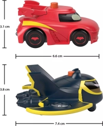Η λεπτομερής κατασκευή σε κλίμακα 1:55 αποτυπώνει πιστά τα ηρωικά οχήματα Redbird και Batwing – ιδανικά για συλλέκτες και για καθημερινό παιχνίδι.