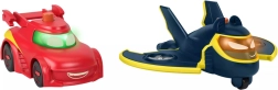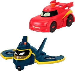 Αυτό το σετ φέρνει ένα δυναμικό δίδυμο ηρωικών οχημάτων – Redbird και Batwing – εμπνευσμένων από τη σειρά Batwheels. Κάθε όχημα έχει φωτιζόμενο «πρόσωπο» που ενεργοποιείται με το κουμπί στην οροφή, ενώ οι ομαλοί τροχοί είναι έτοιμοι για γρήγορες διαδρομές στο δωμάτιο.