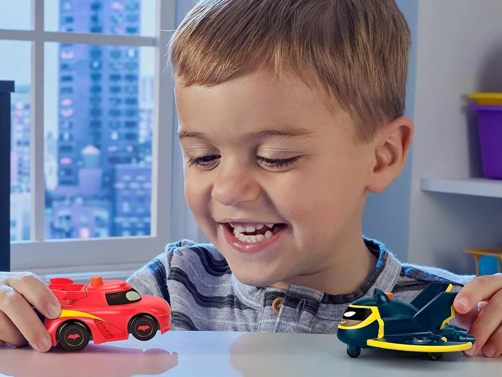 Τα οχήματα είναι σχεδιασμένα για μικρά παιδικά χέρια, ενισχύουν τη φαντασία, το role-play και την ανάπτυξη της λεπτής κινητικότητας. Η κλίμακα 1:55 ταιριάζει υπέροχα σε συλλογές και συμπληρώνει συμβατά άλλα παιχνίδια από τον κόσμο των DC BATWHEELS.