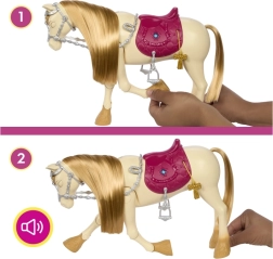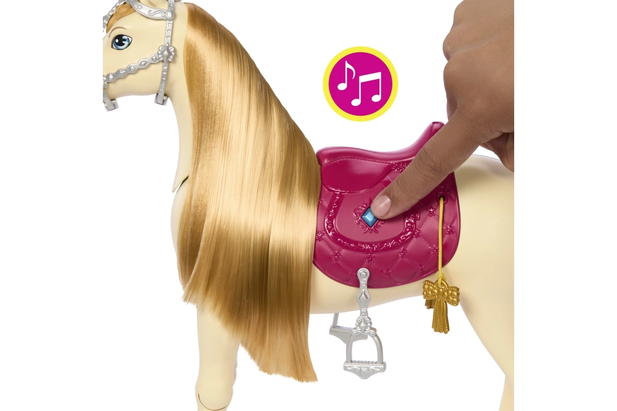 Συμμετέχετε στη Barbie σε αξέχαστες περιπέτειες με το χορευτικό της άλογο, που προσφέρει ώρες διασκέδασης και δημιουργικότητας. Το άλογο κάνει περισσότερα από το να χορεύει - μπορεί επίσης να παίζει τραγούδια και να ανταποκρίνεται σε απτικά ερεθίσματα. Με 12 διαφορετικά αξεσουάρ, τα παιδιά μπορούν να απολαμβάνουν ατελείωτες ιστορίες γεμάτες φαντασία.