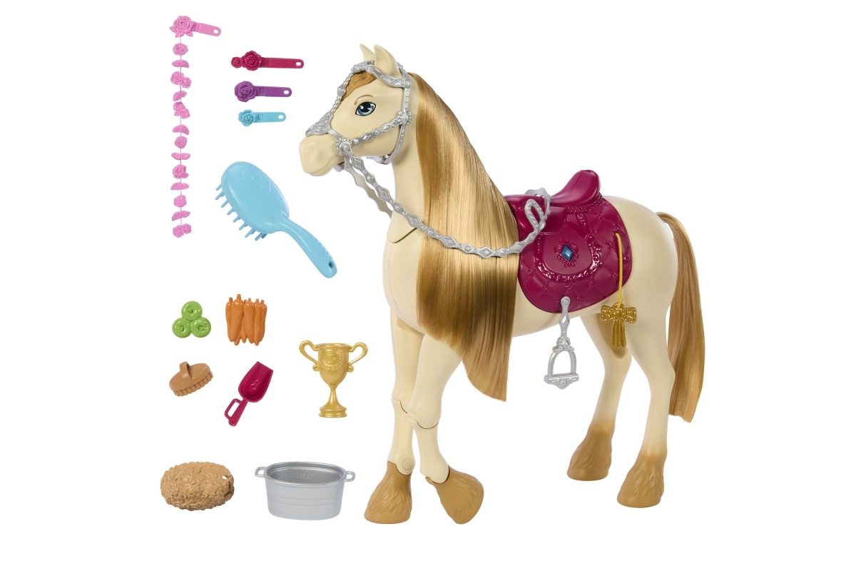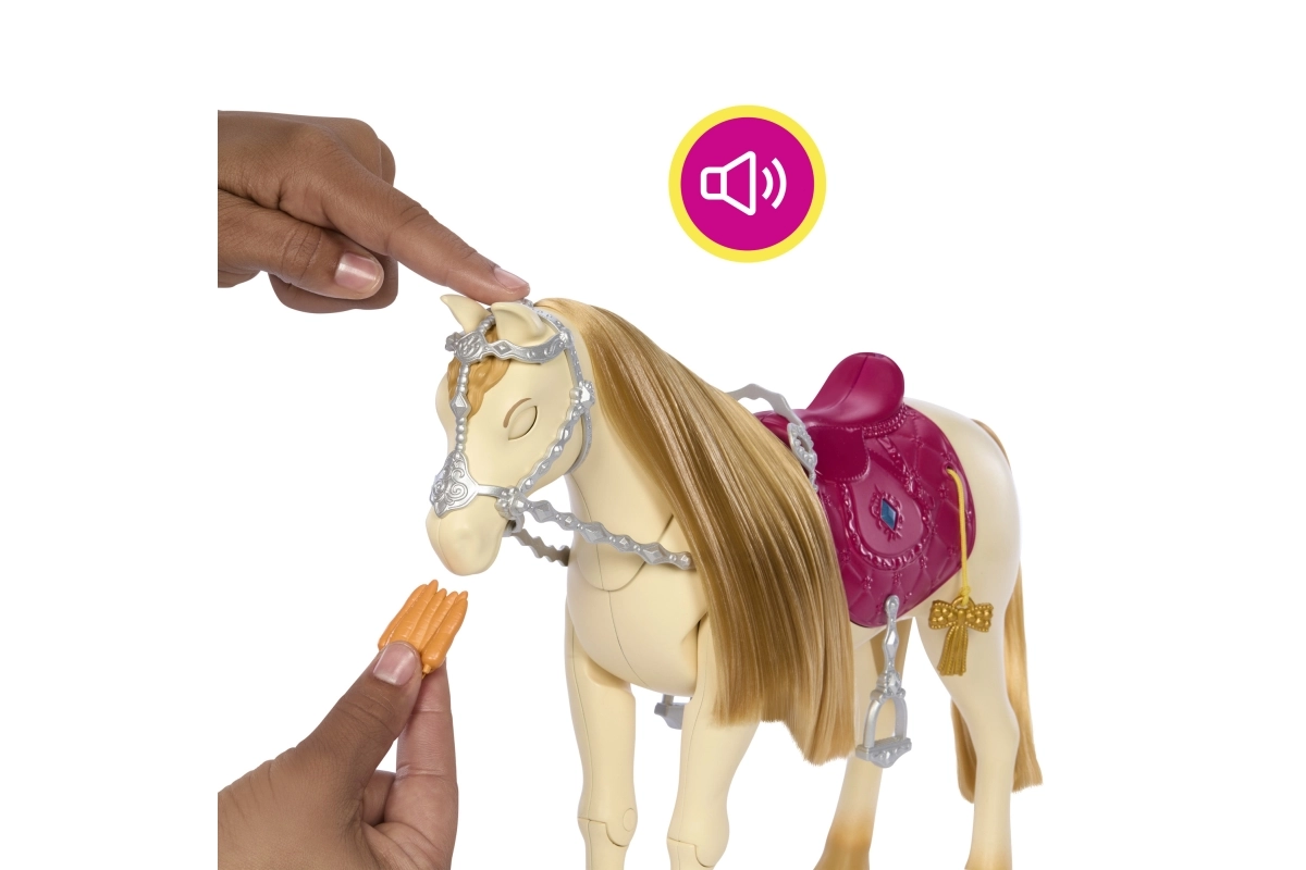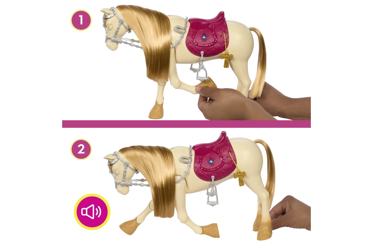 Αυτό το άλογο μπορεί με τις κινήσεις του να μεταμορφώσει τους αρχάριους καβαλάρηδες σε φροντιστικούς ήρωες. Αγγίξτε τη χαίτη του ή πατήστε το πολύτιμο πετράδι της σέλας για ενεργοποίηση τραγουδιών και ήχων. Με τις λιχουδιές, τα διακοσμητικά αξεσουάρ και άλλα στοιχεία αφήγησης, αυτό το αλογάκι είναι έτοιμο να προσθέσει μαγεία σε κάθε παιδική μέρα.