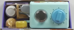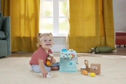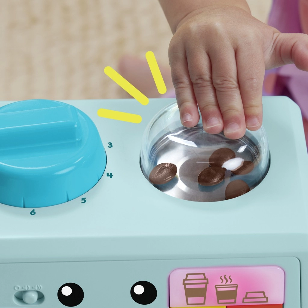 Τα παιδιά μπορούν να πατήσουν τα κουμπιά για να προσομοιώσουν την προετοιμασία καφέ, να περιστρέψουν τον επιλογέα για αφρόγαλα ή να κινήσουν τον μύλο καφέ για να δουν πώς «πετάγονται» οι κόκκοι. Περιλαμβάνονται επίσης αξεσουάρ παιχνιδιού: δύο κυπελλάκια καφέ, κουταλάκι, κρουασάν, μαλακή τσάντα για προϊόντα με καπάκι, κυπελλάκι γάλακτος και βάση μεταφοράς.