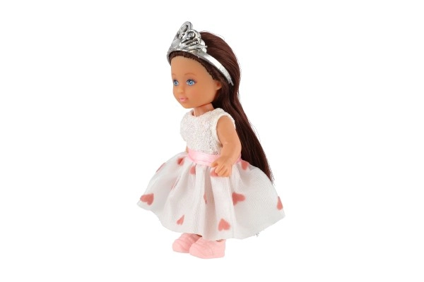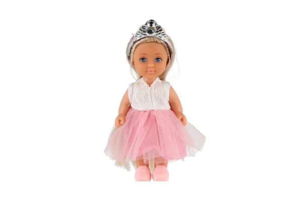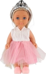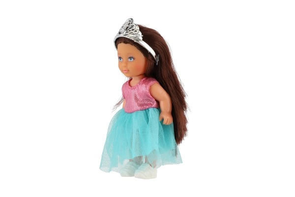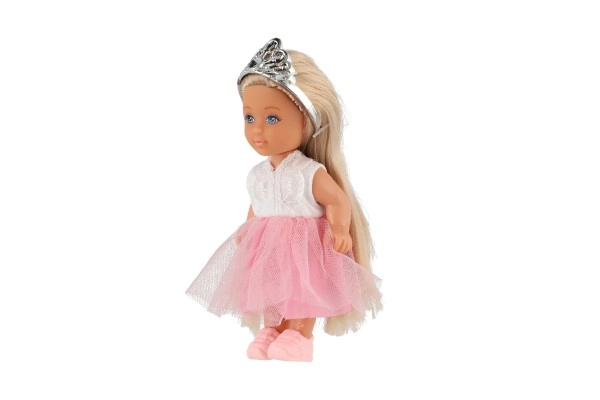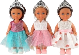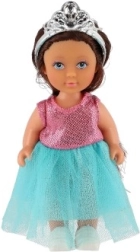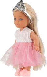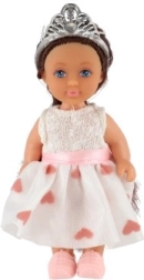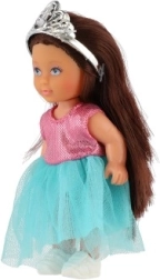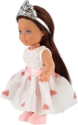 Η κούκλα διαθέτει κορόνα και μακριά μαλλιά που προσθέτουν στη γοητεία της.