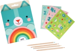 - Μπλοκ 100 σελίδων, 4 διπλές χρωματιστές ξυλομπογιές, 3 φύλλα αυτοκόλλητων (πάνω από 70 τεμ.)