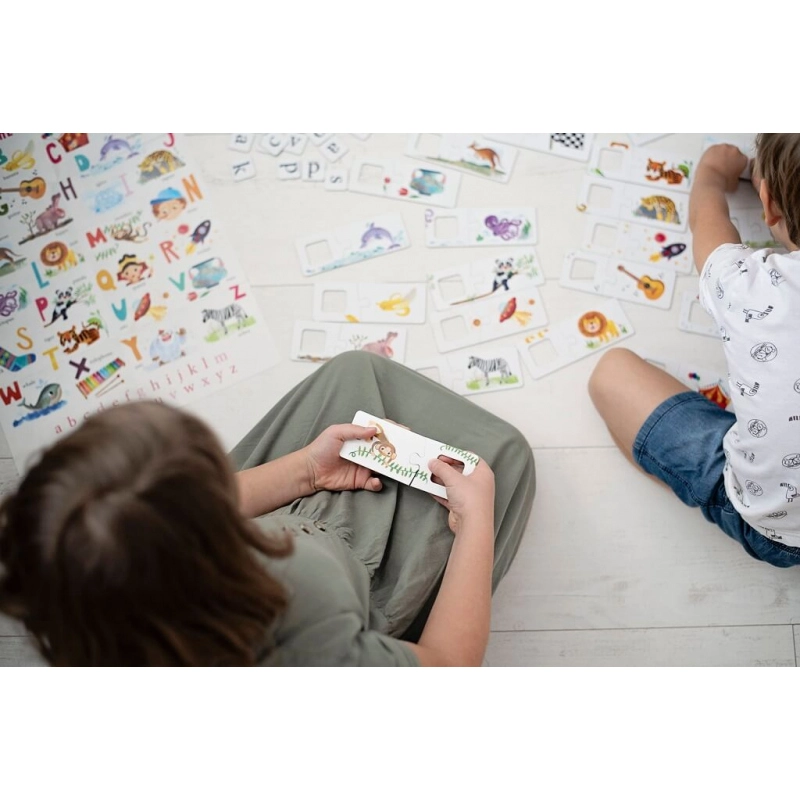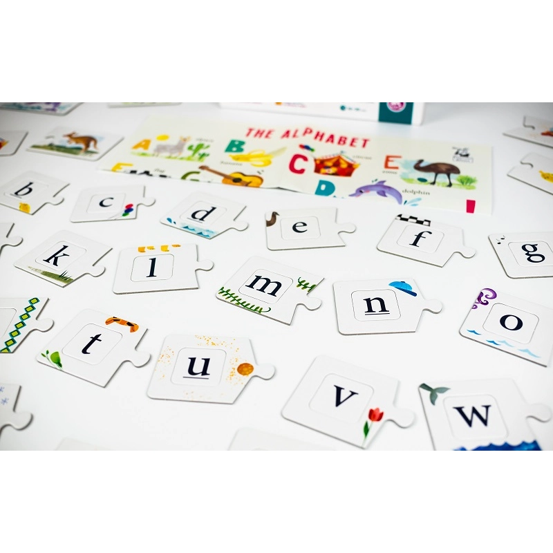 Περιλαμβάνει 26 διμερή κομμάτια παζλ με αφαιρούμενες μάρκες και μια πολύχρωμη αφίσα με το αγγλικό αλφάβητο. Είναι μια εξαιρετική εναλλακτική στις ψηφιακές εφαρμογές και υποστηρίζει τα παιδιά στην ανάπτυξη δεξιοτήτων απαραίτητων για τον 21ο αιώνα.