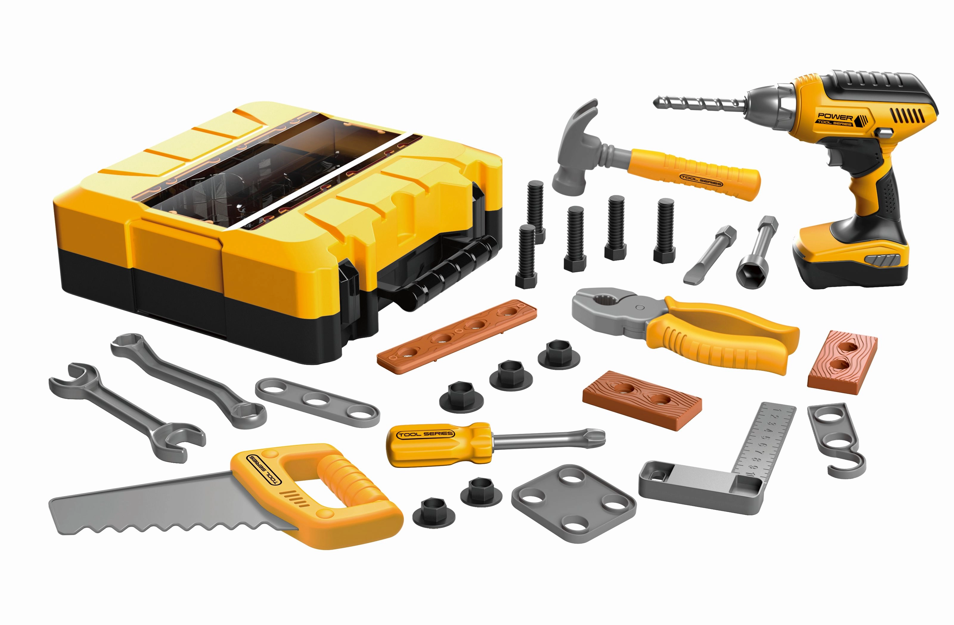 - Βαλιτσάκι, δραπανοκατσάβιδο με ανταλλακτικά κατσαβιδιών, σφυρί, πένσα, πριονάκι, κατσαβίδι, 2 κλειδιά, χάρακας, ξύλινες ράβδοι, βίδες, παξιμάδια και άλλα