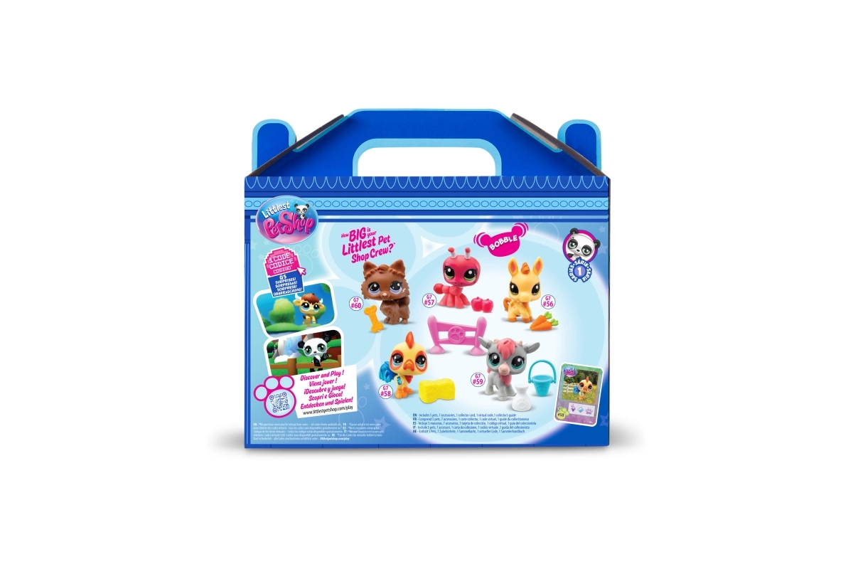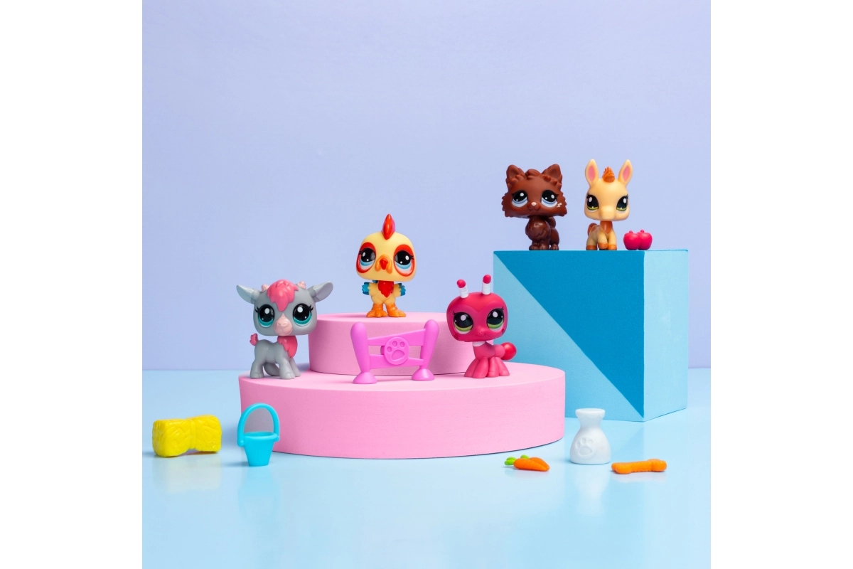 Φτιάξτε τη φάρμα των ονείρων σας με τη νέα γενιά Littlest Pet Shop. Στη συσκευασία θα βρείτε πέντε πολύχρωμα κατοικίδια (π.χ. κοτοπουλάκι, αρνάκι, κουταβάκι, εντομάκι ή πουλαράκι) και ένα σετ θεματικών αξεσουάρ, με τα οποία τα παιδιά δημιουργούν εύκολα τις δικές τους ιστορίες. Οι φιγούρες έχουν χαρακτηριστικά μεγάλα μάτια, έντονα χρώματα και είναι ιδανικές για φανταστικό παιχνίδι και συλλεκτικότητα.