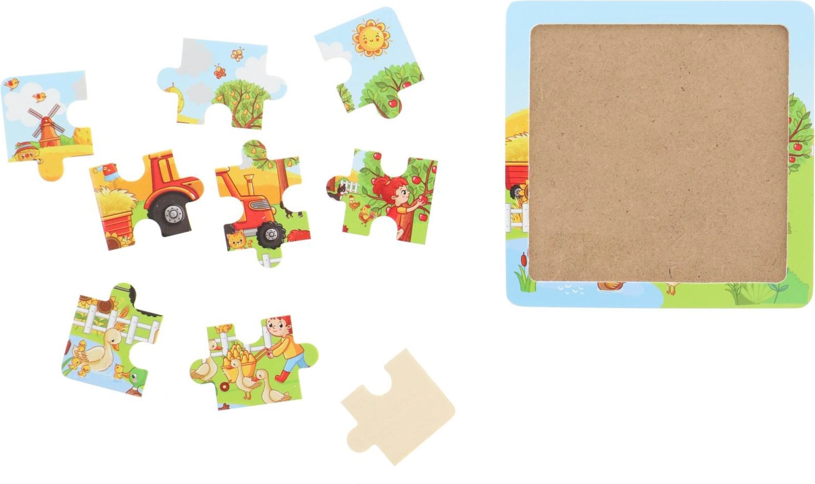 Το ξύλινο παζλ Συγκομιδή με 9 κομμάτια είναι εξαιρετική επιλογή για την πρώτη επαφή με τα παζλ. Χάρη στη ποιοτική ξύλινη βάση και τα στιβαρά κομμάτια, τα παιδιά χειρίζονται εύκολα το παζλ και κάθε επιτυχία ενισχύει την αυτοπεποίθησή τους. Το φρεζαρισμένο περίγραμμα στη βάση βοηθά να καθοδηγηθούν τα κομμάτια στη σωστή θέση.