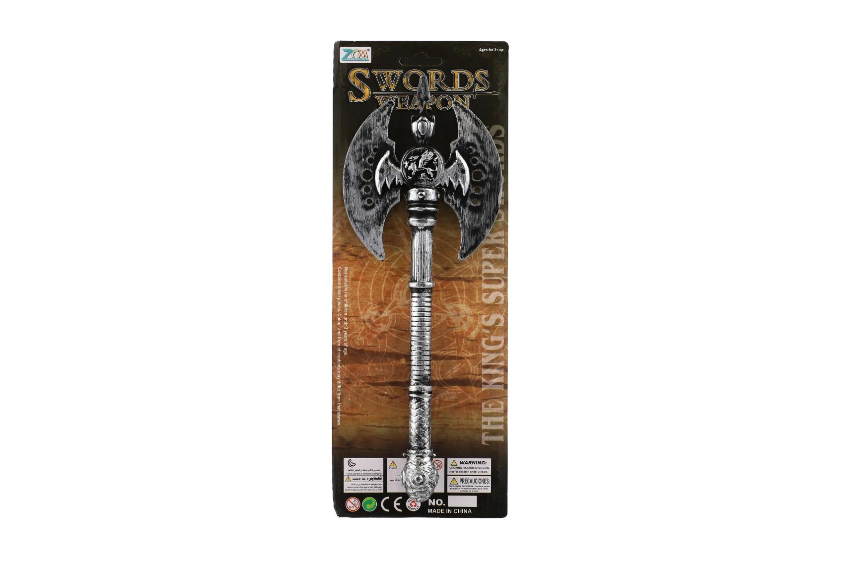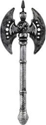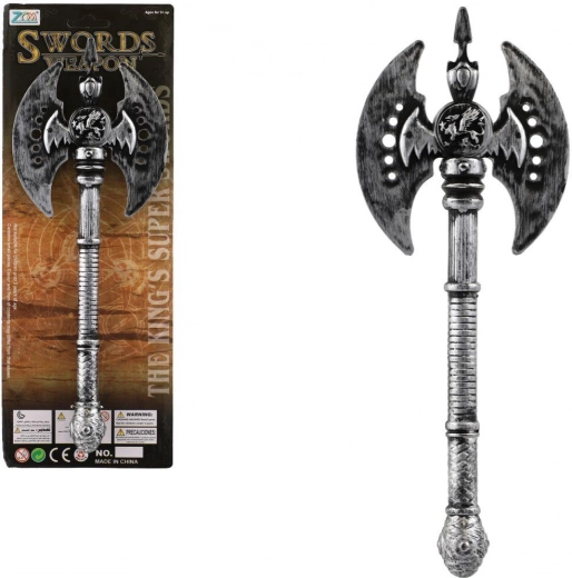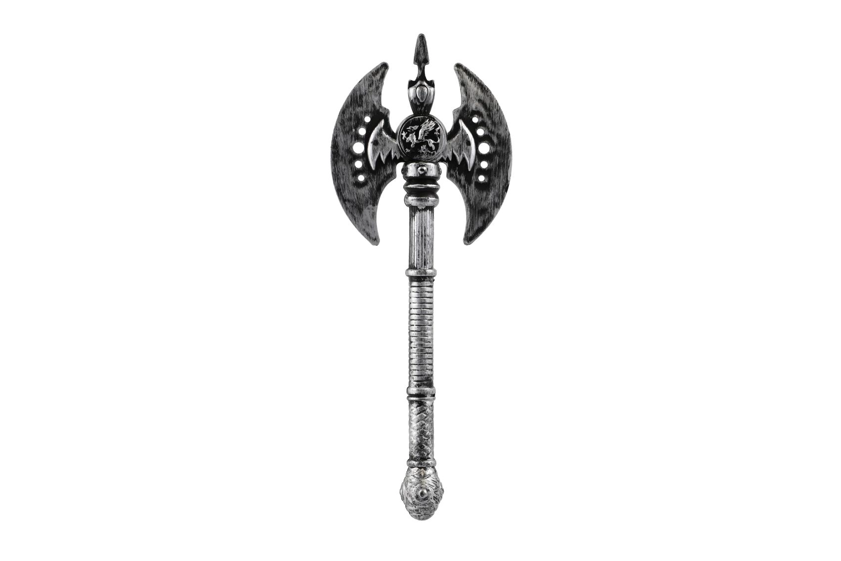Διπλής όψης πολεμικό τσεκούρι από πλαστικό, ιδανικό αξεσουάρ για ιστορικές στολές, μεταμφιέσεις δήμιου και για το Halloween. Ελαφρύ, ασφαλές και μήκους 30 cm – ιδανικό για παιδικά παιχνίδια και θεματικά πάρτι. Κατάλληλο για παιδιά από 3 ετών.
