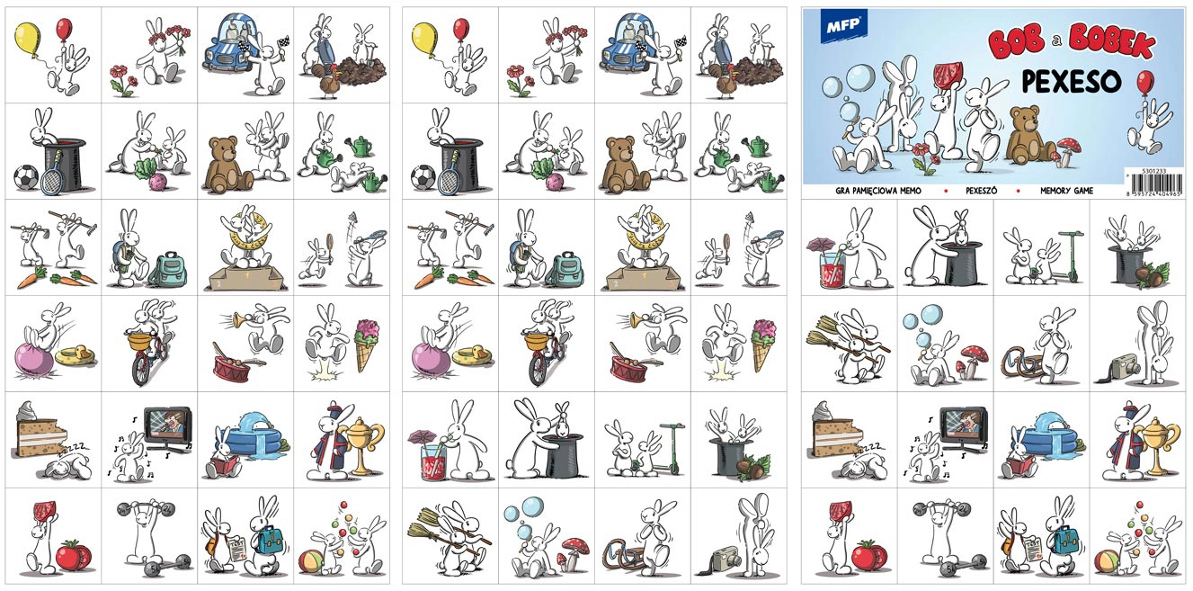 Ανακαλύψτε τη μαγεία του κλασικού παιχνιδιού με το πεξέσο Μπομπ και Μπομπέκ. Το σετ σε μορφή 3×A4 προσφέρει πολύχρωμα ζεύγη εικόνων με τους ήρωες από τα δημοφιλή παραμύθια της Τσεχικής Τηλεόρασης. Ιδανικό για οικογενειακές βραδιές, νηπιαγωγεία και δημοτικά σχολεία.